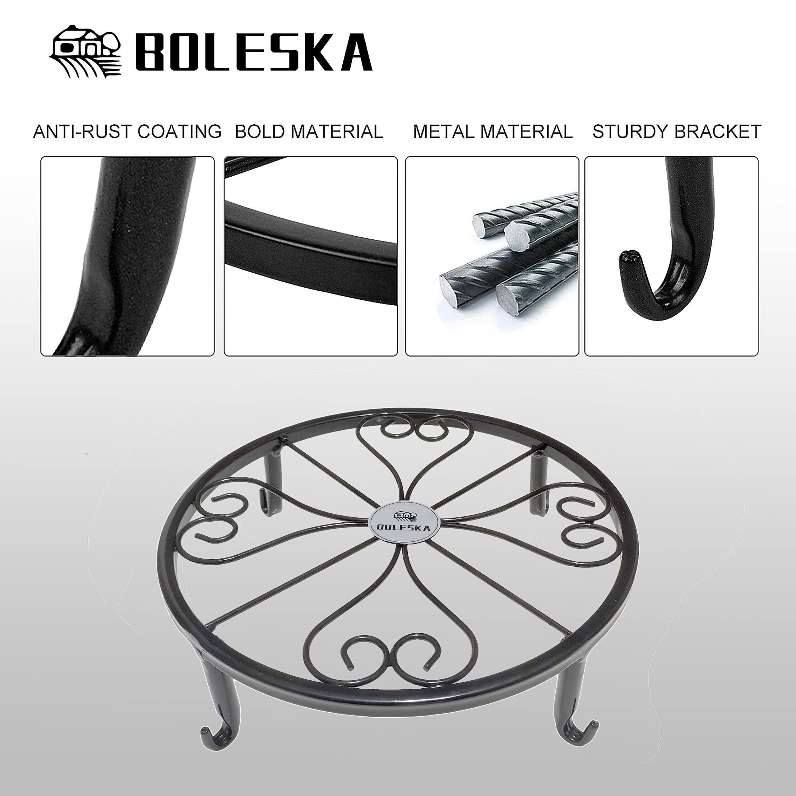 【数量限定】BOLESKA 3個組花台 アイアンフラワースタンド 植木鉢スタンド 猫脚付鉢置き プレート 飾り台 ガーデニング アンティーク 室内 屋外 おしゃれ(3個-ブラック)