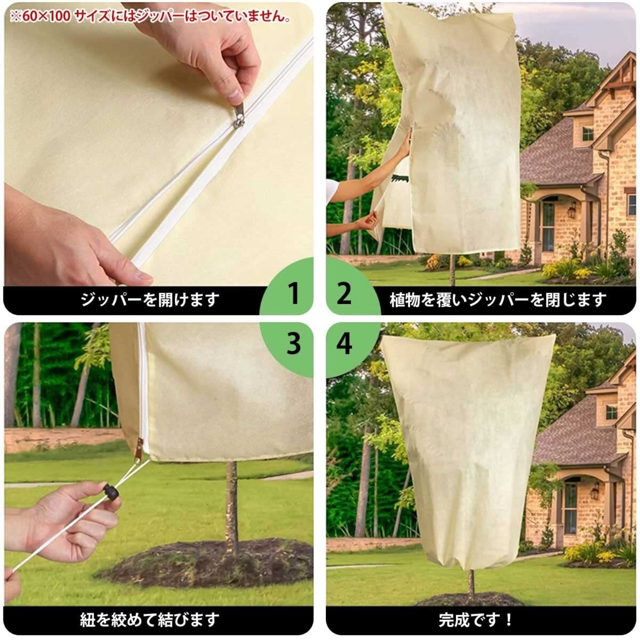 【 簡単に脱着できる 】カバーを掛けるだけの簡単設置。ファスナー、巾着設計で、植物をしっかり保護できます。