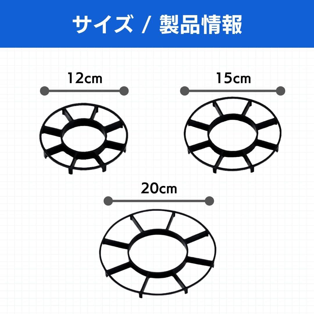 【植物の健康を保つ植木鉢スペーサー】丸い通気性のあるデザインを使用して水の流れを確保し、余分な水分による根腐れや黒腐病を防ぎます。【安心して置ける底面設計】底部が広く厚いため、鉢を支える面積が多く、傾きや滑りを防ぎます。小さな鉢から大きな鉢まで安定して支えることができ、安心してお使いいただけます。【長く使えて水はけも抜群】高品質素材で作られており、長期間安心して使用できます。さらに、目詰まりしにくく、水やり時に水を素早く排出します。【コンパクトで収納ラクラク】コンパクト設計で場所を取らず、使用しない時は積み重ねてスッキリ収納できます。【サイズ】・直径12cm・直径15cm・直径20cm