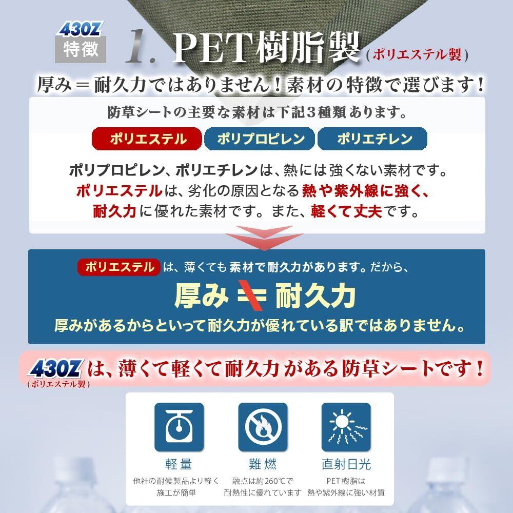 防草シート 耐久年数17~19年 硬い材質のため曲げて梱包出来ない防草シート PET製 雑草対策 防草対策 雑草防止シート (2m×50m, 430Z(グリーン))