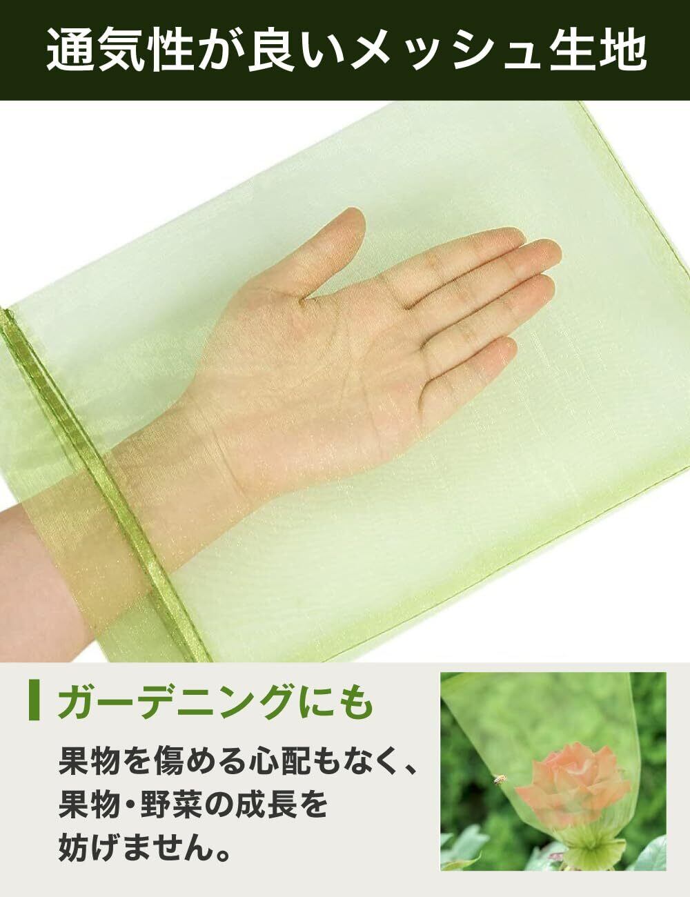 ★【通気性抜群の設計!】高品質のメッシュ素材を採用しており、光と空気をしっかり通すことで、作物が健康に育つことをサポートします。虫除けや防鳥効果もあり、大切な作物を万全に保護します。
