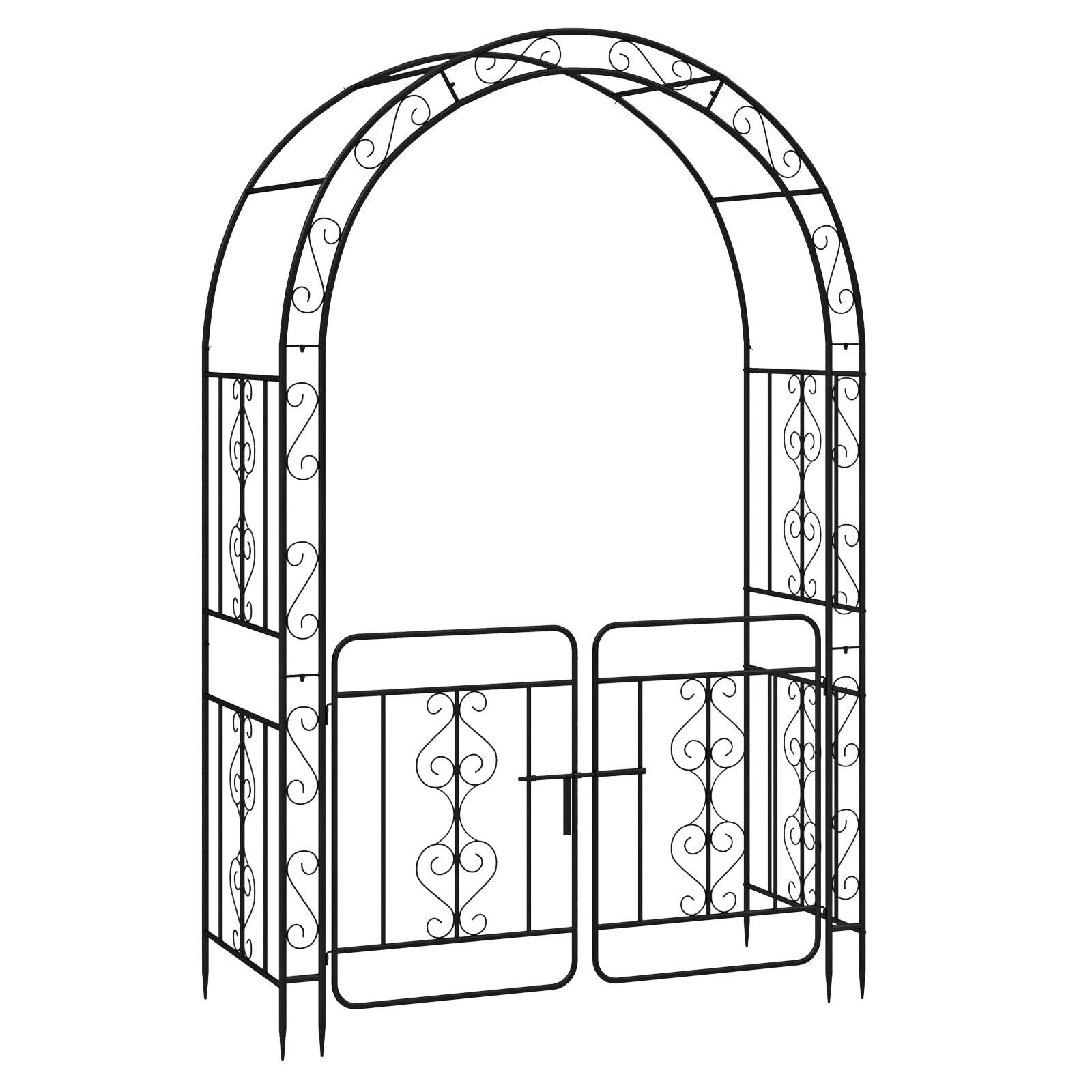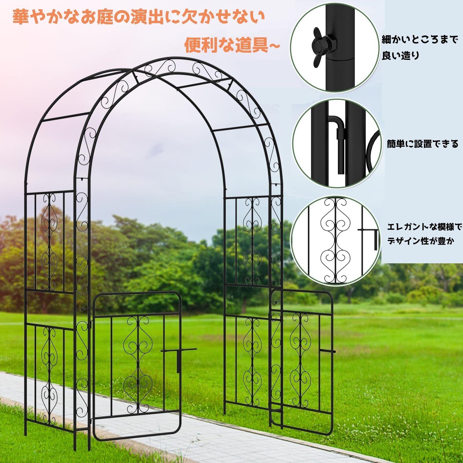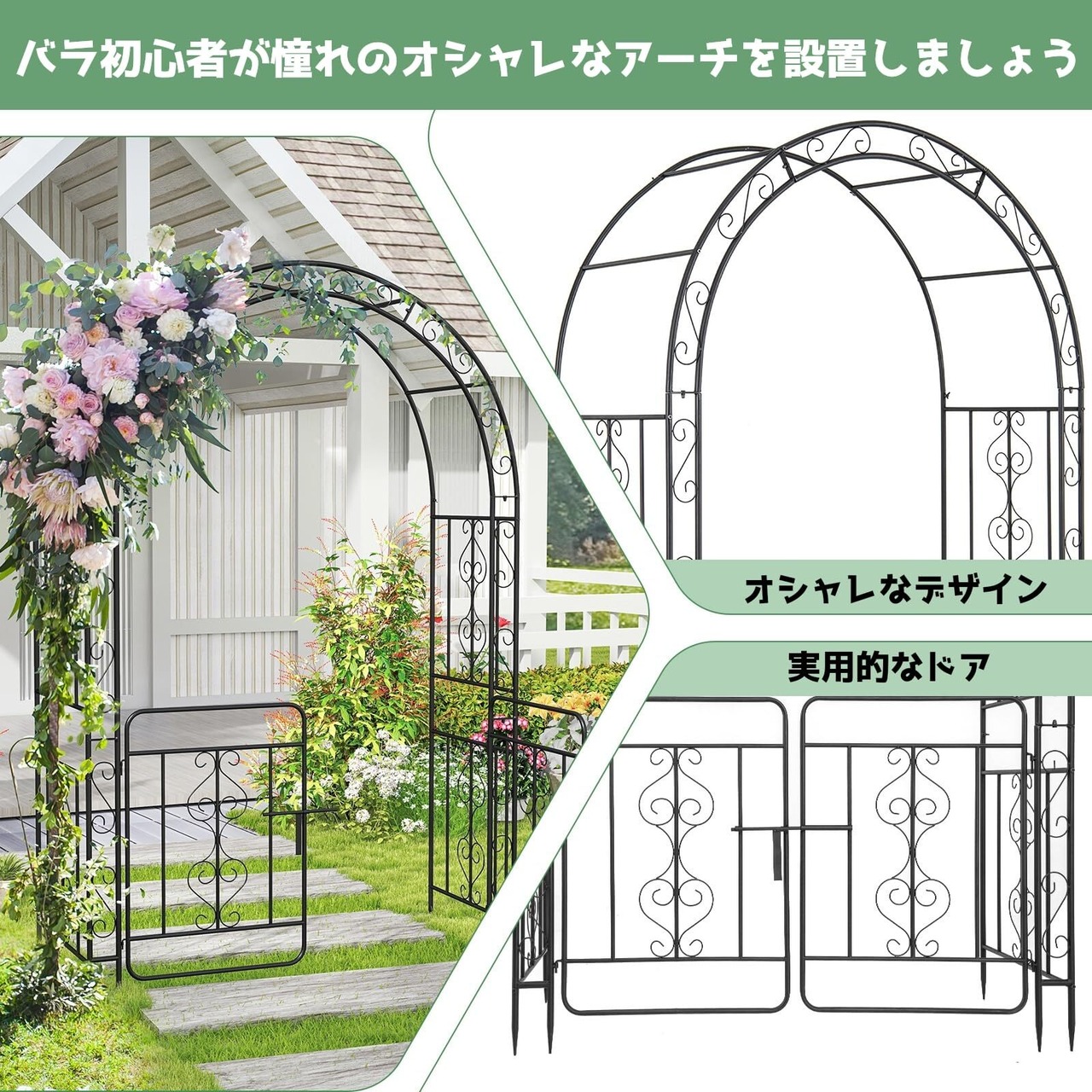 バラアーチ 薔薇アーチ ガーデニング アーチ ドア付き 鉄製 幅136x奥行58x高さ213cm ローズアーチ ガーデンアーチ アイアンアーチ 錆びない フラワーアーチ 園芸用品 結婚式装飾