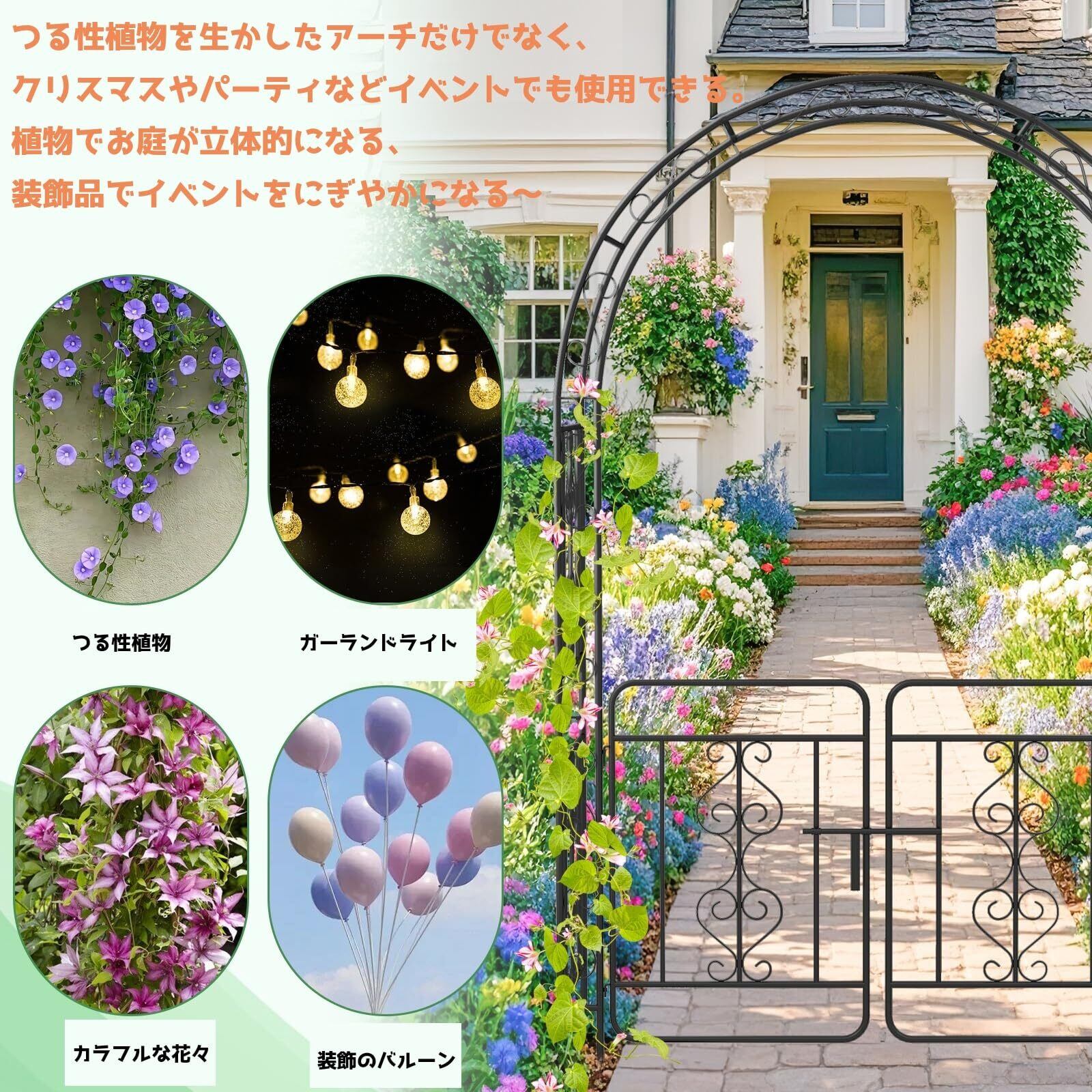 ★【多用途で楽しめるデザイン!】このアーチは、薔薇などのつる植物を支えるだけでなく、自由にデコレーションを楽しむことも可能です。イベントや結婚式のフォトスポットとしても使え、あなたの想像力でお庭を演出できます。