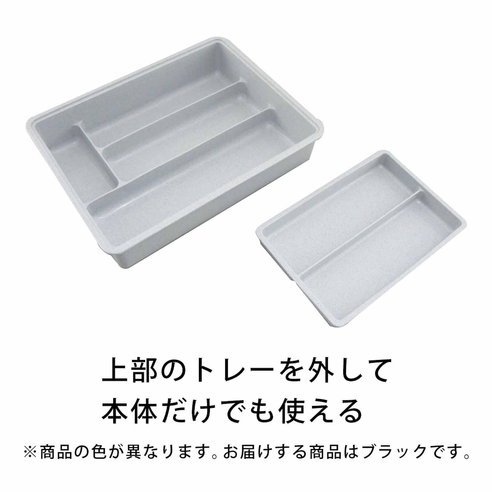【在庫処分】下村企販 カトラリーケース 仕切り付き スライド式 【日本製】 引き出し 整理トレー 2段 食器棚 収納 箸入れ スプーン フォーク 鉛筆 子供部屋 ブラック 樹脂製 燕三条 24680