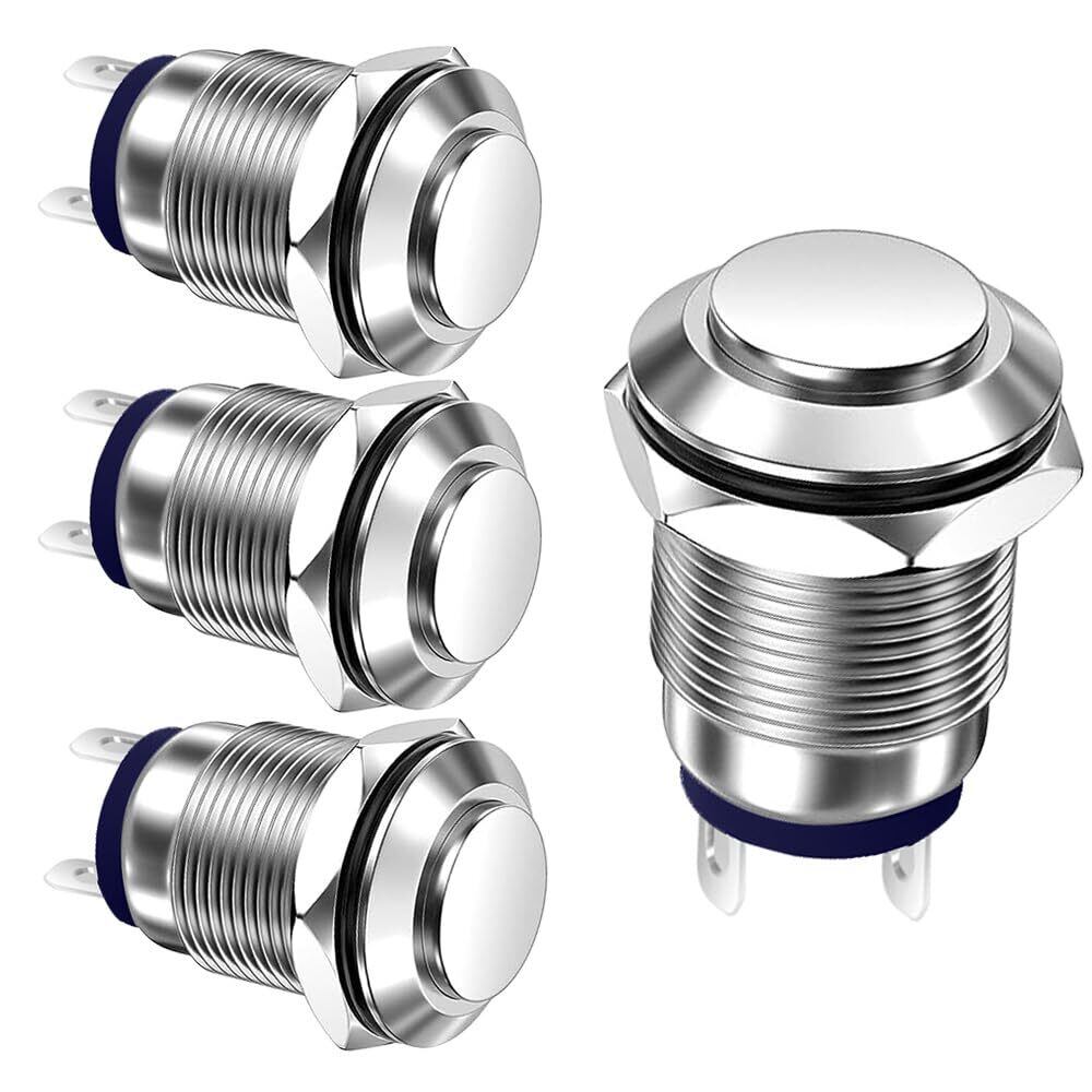 【在庫セール】4個セット3A 12V/24V/110V/250V AC ラッチング 防水 押しボタンスイッチ(高い頭)) シルバースニッケルメッキ銅しボタンスイッチ(装着直径12mm)