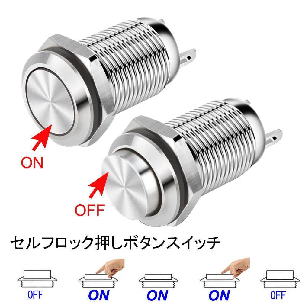 【在庫セール】4個セット3A 12V/24V/110V/250V AC ラッチング 防水 押しボタンスイッチ(高い頭)) シルバースニッケルメッキ銅しボタンスイッチ(装着直径12mm) | KURASHILABO