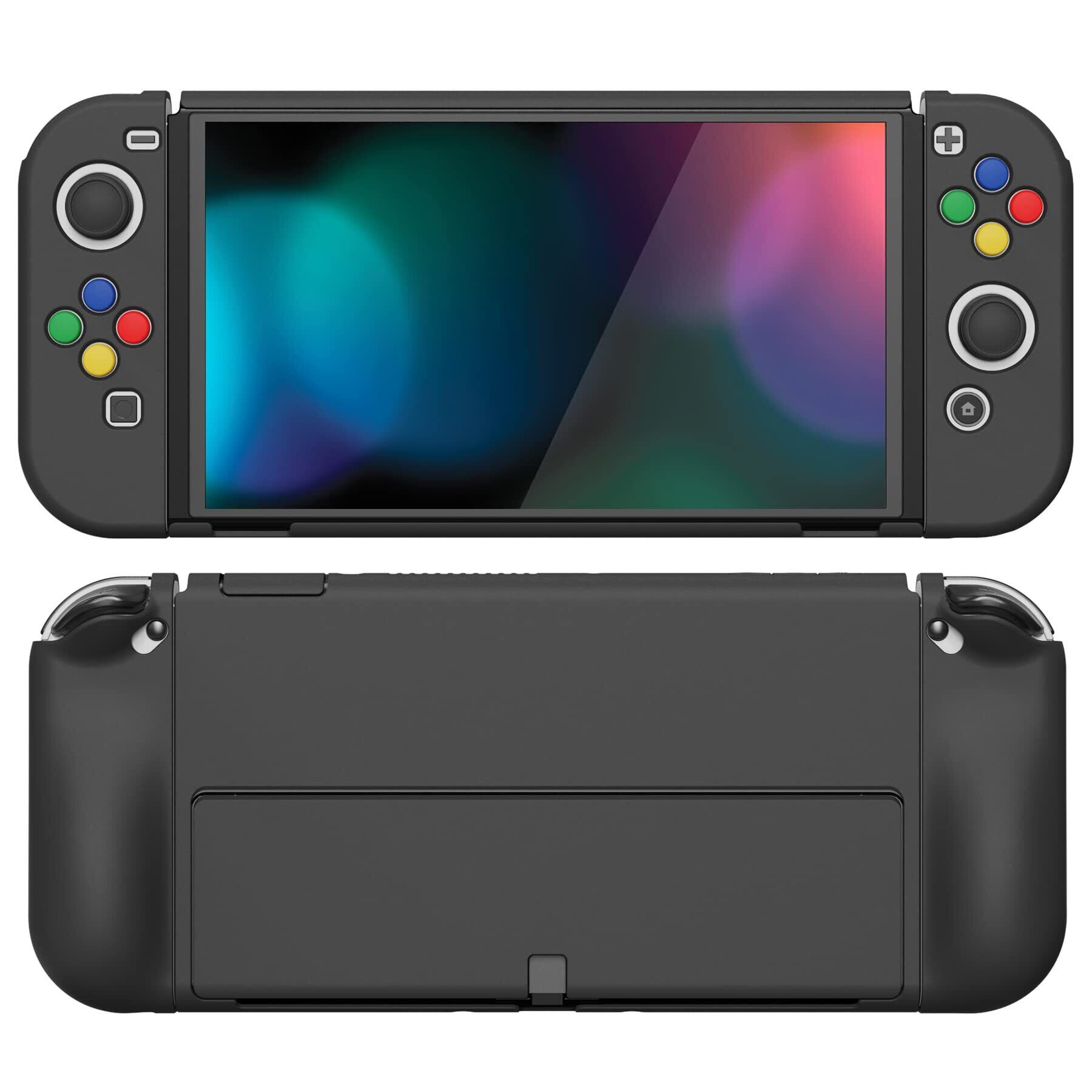 【新春セール】PlayVital AlterGrips Nintendo有機elに対応用保護シェル、ジョイコンに対応用人間工学に基づいたデザインしたハードカバー、サムグリップキャップカバーとボタンキャップは付属しています【ブラック】
