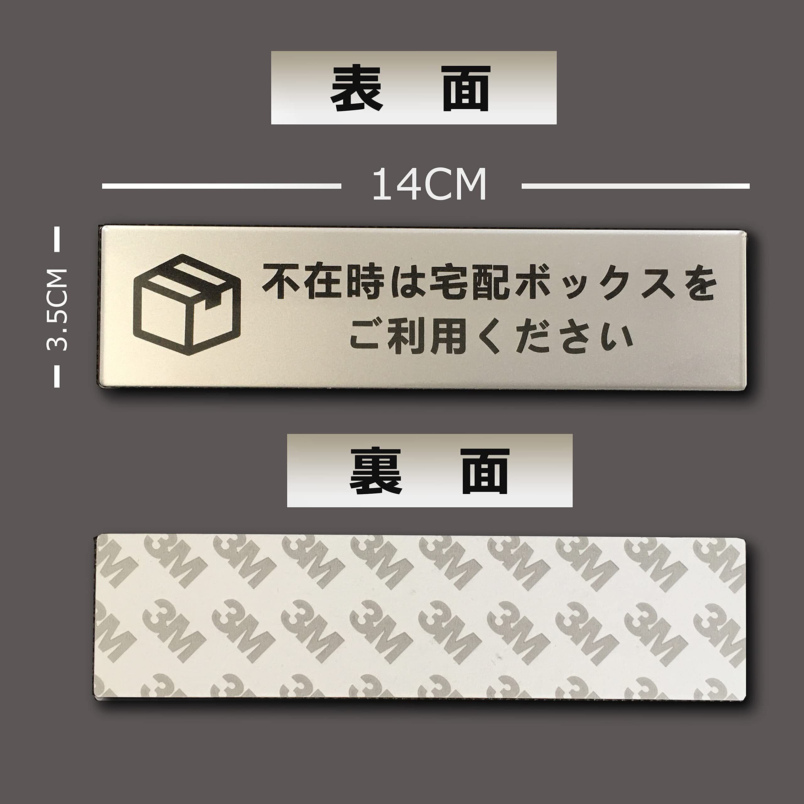 【人気商品】不在時は宅配ボックスをご利用ください ヨコ型 サインプレート 両面テープ付き シルバー色 2㎜アクリル製 おしゃれ 14×3.5㎝ (1枚入り) | KURASHILABO