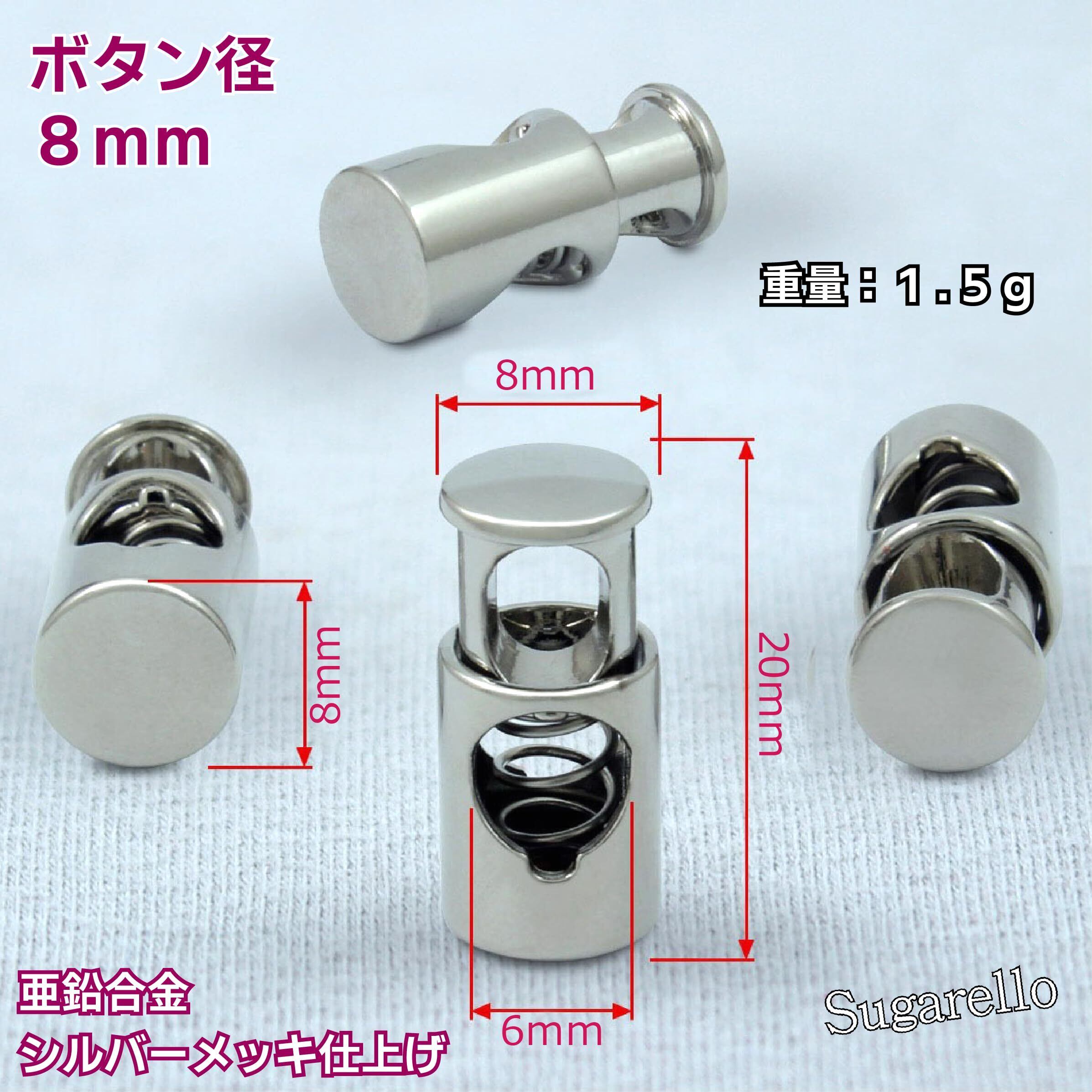 【在庫セール】[sugarello] コードストッパー 金属製 ひも留め トグルストッパー 紐止め 紐止め金具 ループエンド コードロック 調整バックル シルバー 8mm×5個 10mm×5個 (10個セット)