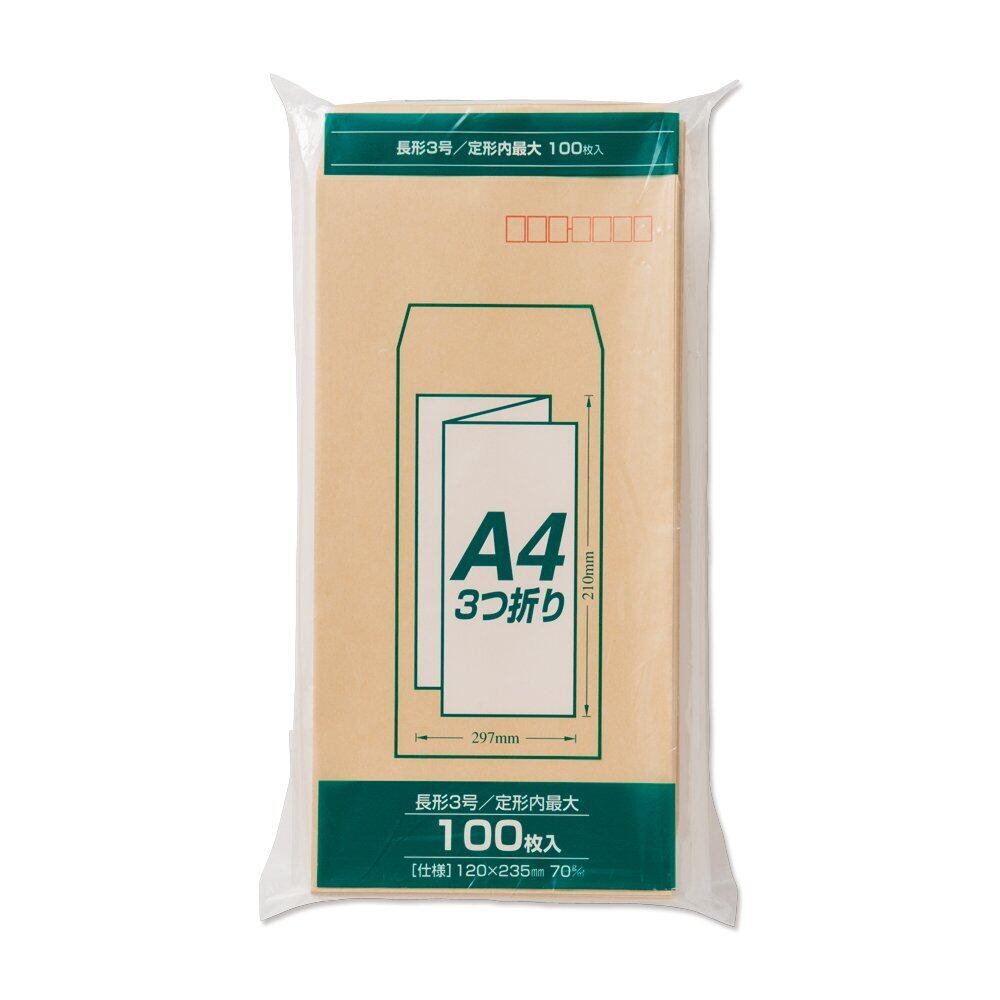 マルアイ 封筒 長形3号 長3 茶封筒 クラフト封筒 郵便枠あり 100枚 PN-Z137