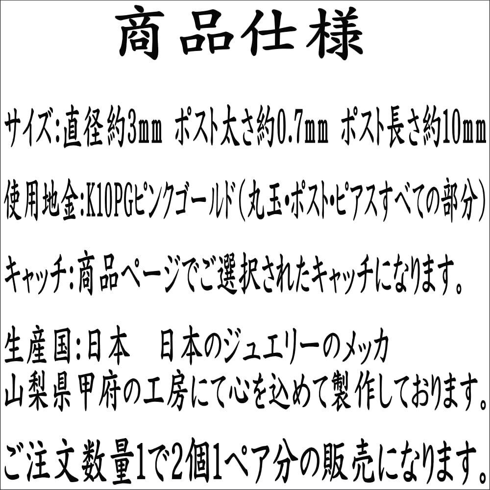【10金ピアス】 丸玉ピアス レディース ピンクゴールド 3mm ボールピアス K10 1ペア両耳販売 日本製 シンプル プレゼント ギフト yokomountain