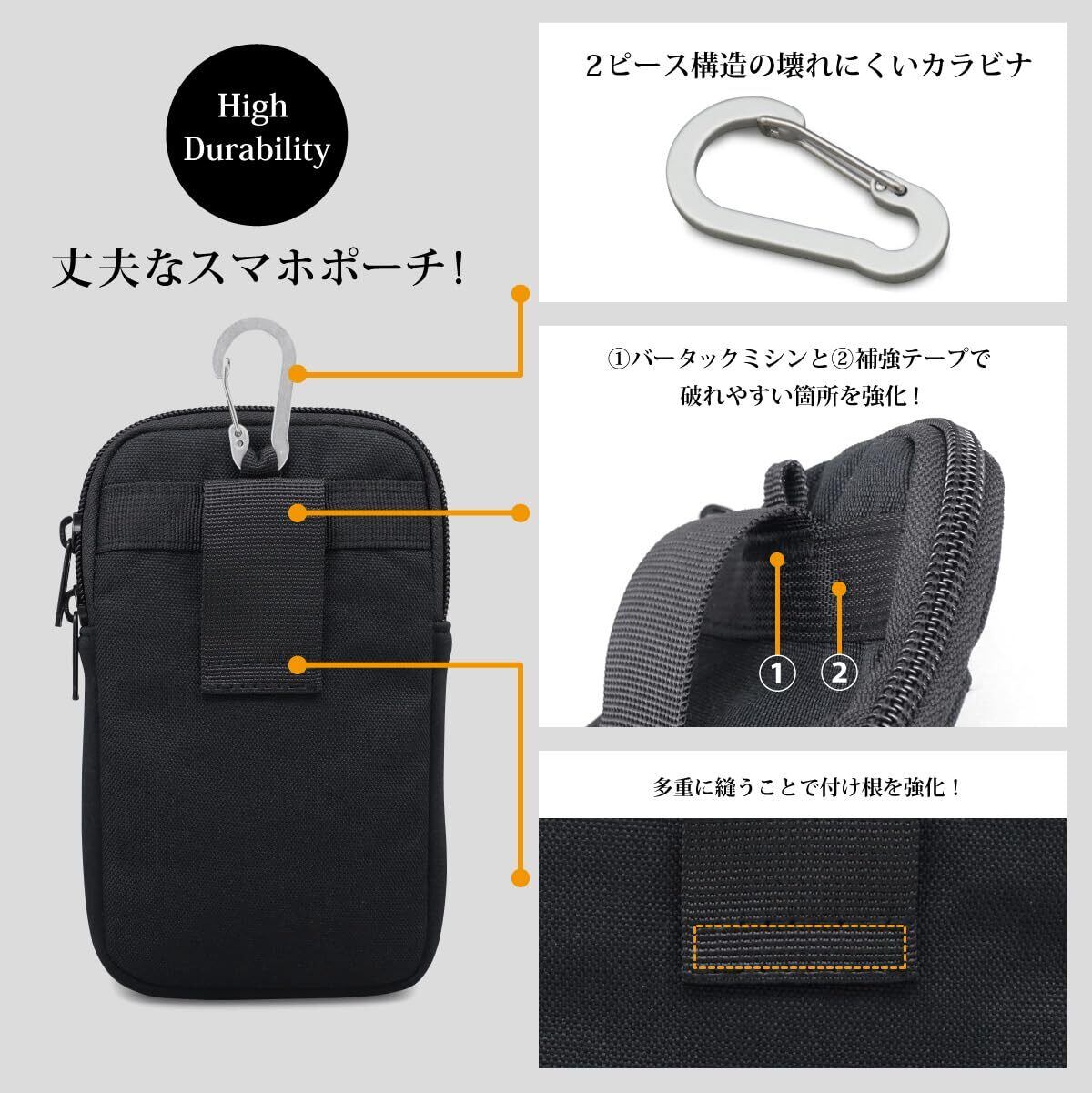 【人気商品】スマホポーチ スマートフォン ウェスト ケース 撥水 (L ブラック)