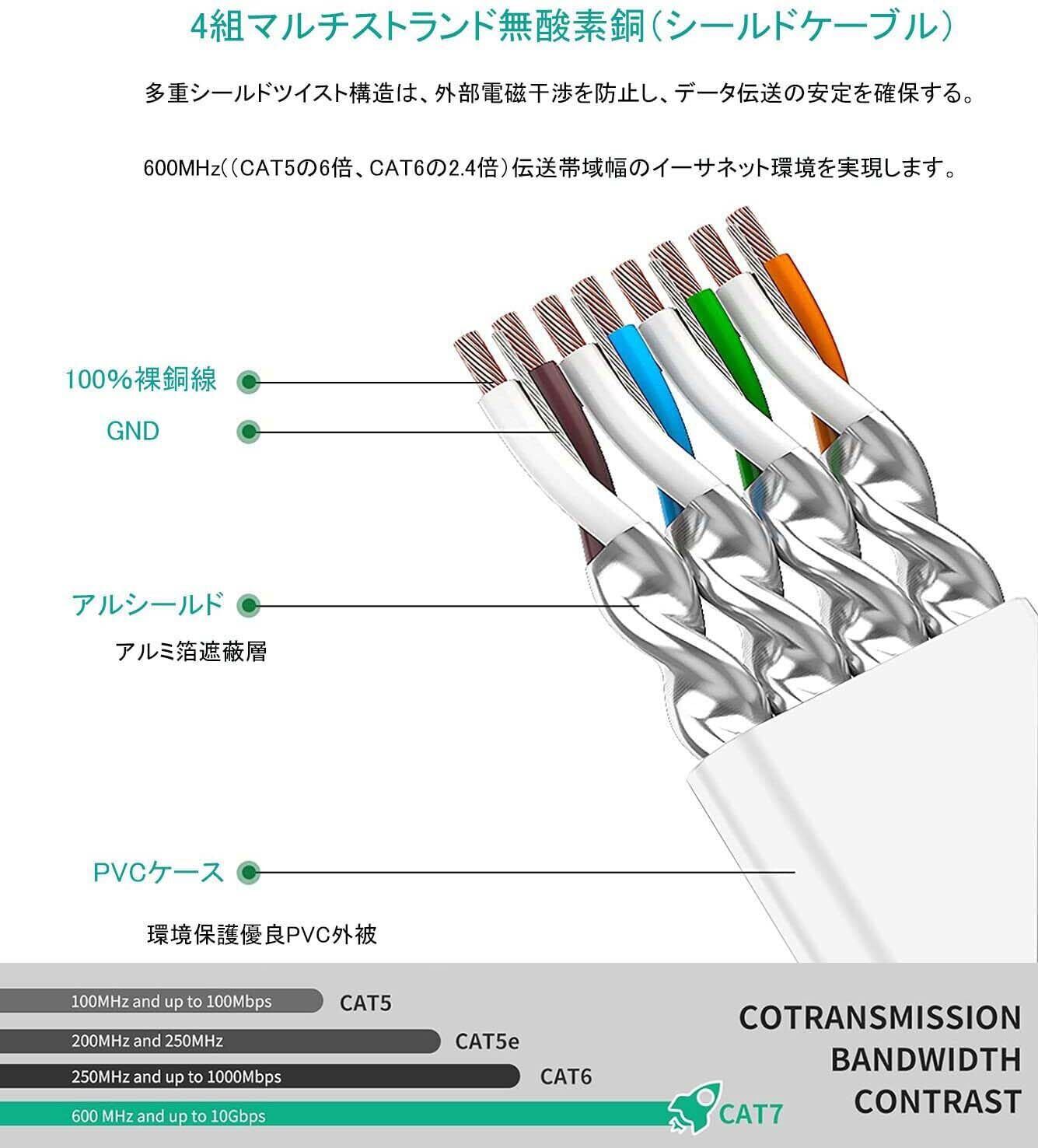 【新春セール】FOSTO Cat7 LANケーブル 30M カテゴリー7準拠 イーサネットケーブル 有線lanケーブル フラットLANケーブル 高速 10Gbps/600MHz STP 爪折れ防止 RJ45コネクタ ギガビット 業務用 屋外用 家庭用 ランケーブルモデム Switch PS4 PS5 Xbox ルーター等に対応(ホワイト)