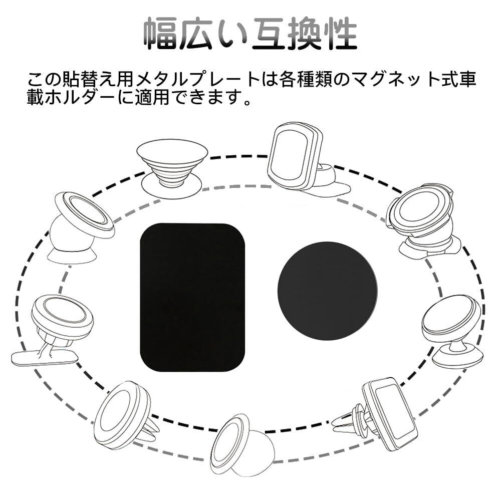 【新着商品】サムコス メタルプレート 4個セット ブラック マグネット プレート プレート スマホ 金属プレート 磁気ブラケット用部品 車載マグネットホルダー用 薄い 粘着固定 車載ホルダー 貼替用 (四角+円形)