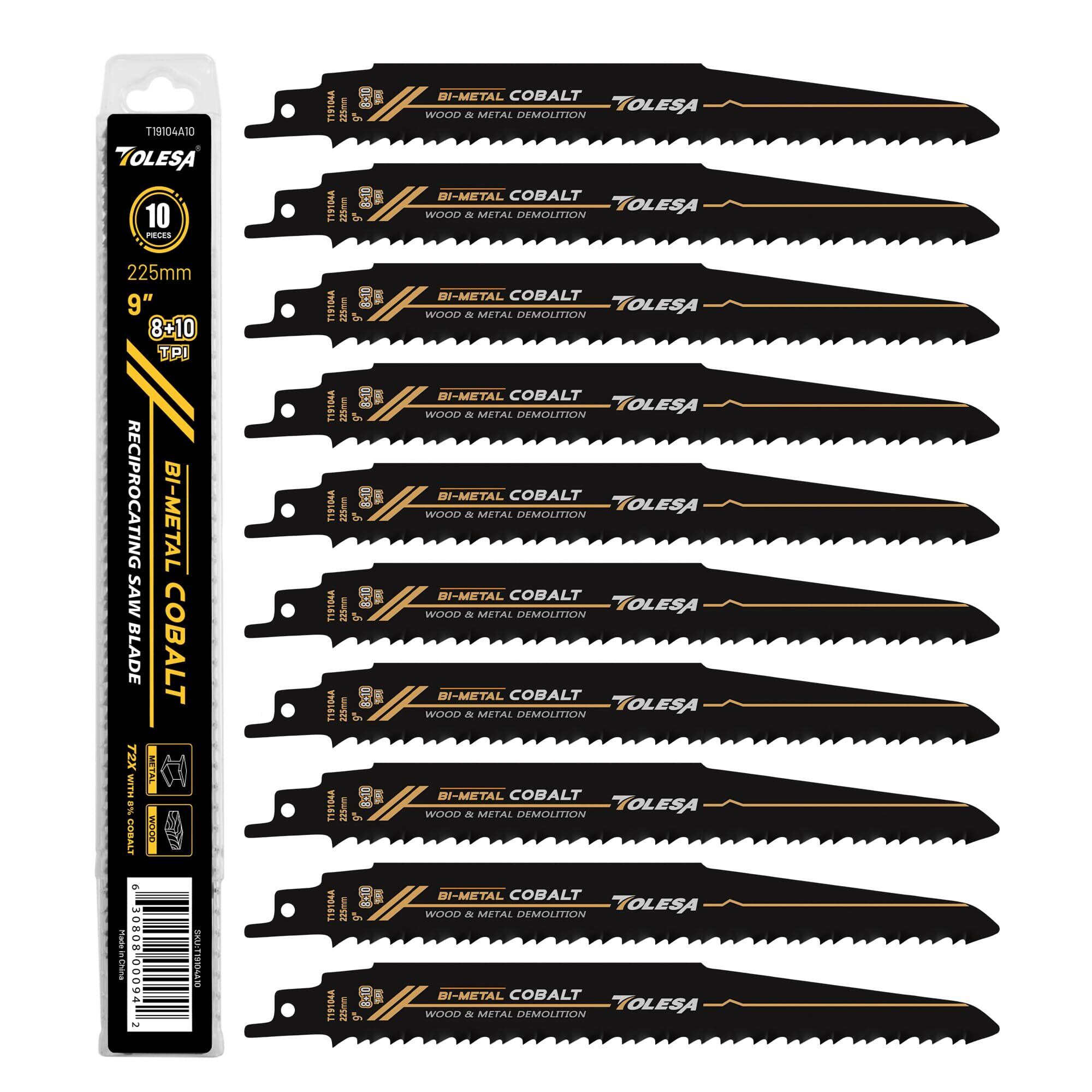【在庫処分】TOLESA レシプロソー替刃 8/10山 225mm バイメタル コバルト セーバーソーブレード 木工&金属 解体用 10枚入れ 釘付き木材 鉄 軟鋼板材 アルミ 黄銅 銅 塩ビ材