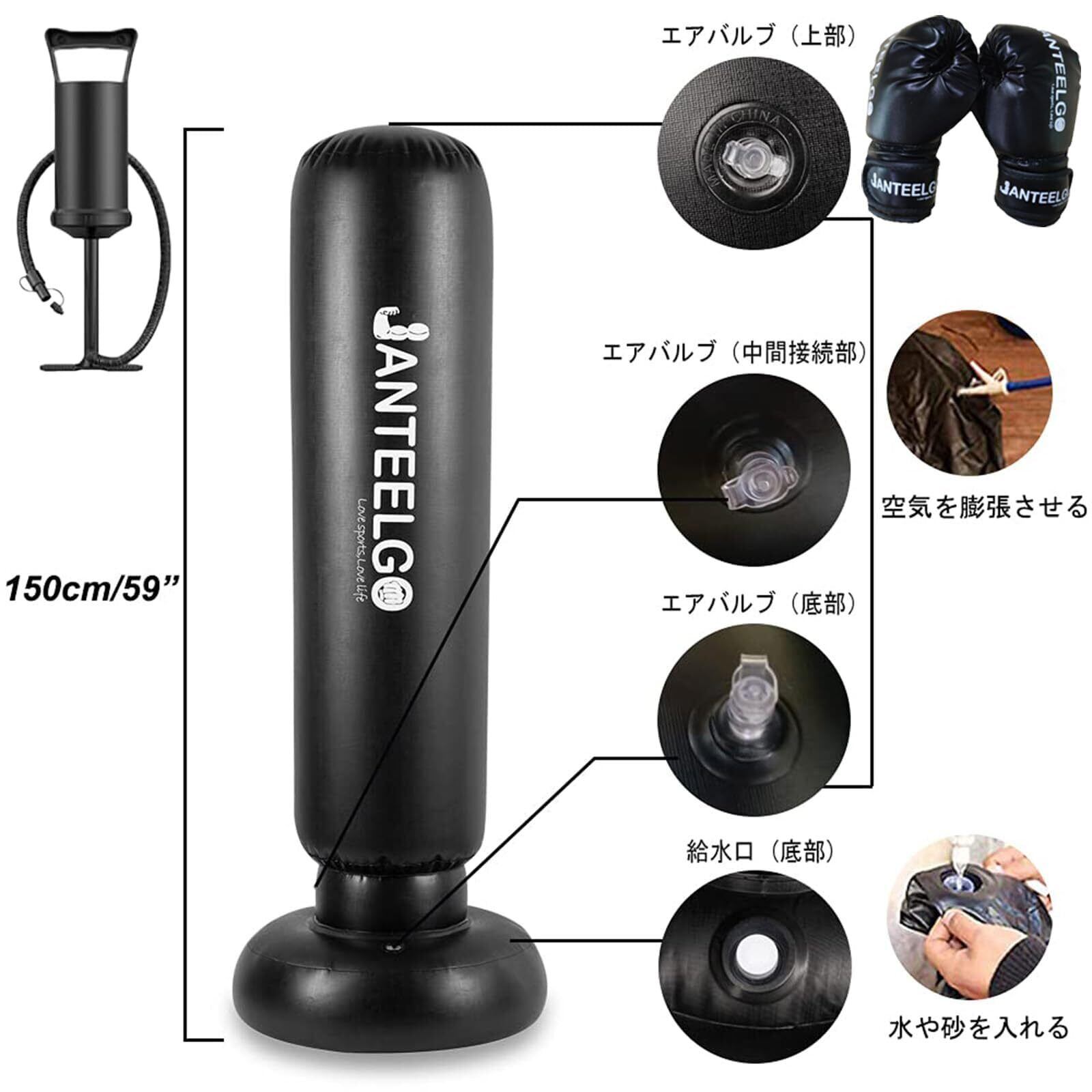 【新春セール】サンドバッグ 子供 ボクシンググローブとエアポンプが付属しています サンドバッグ 自立型 VPC製0.4mm厚 ストレス解消・室内トレーニングに最適 自宅からプロの格闘技までのボクシングバッグは、身体訓練とフィットネスを感情的な欠陥を和らげるのに役立ちます。3〜12歳の に適しています 子供の日、誕生日、クリスマスへの贈り物として使用できます(ブラック-150cm)