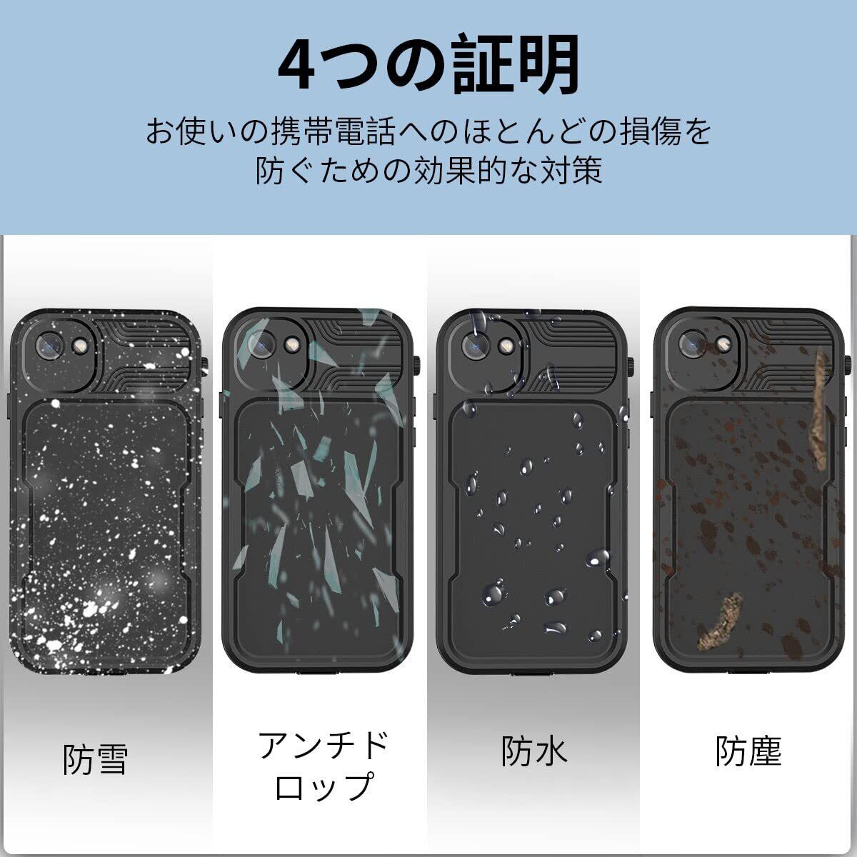 【数量限定】AICase iPhone SE 2022/2020 / iPhone 7/8防水ケース、4.7インチ360°防塵および耐衝撃性、IP68フルボディ保護iPhone 7 / 8 / SE 2020 /SE2022用の完全密閉水中保護コーブ-ブラック | KURASHILABO