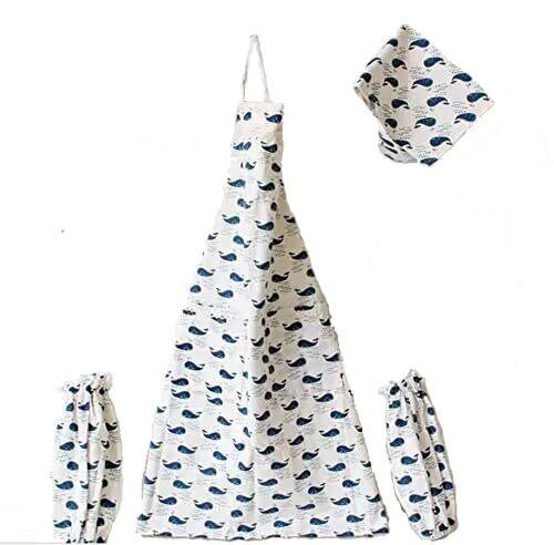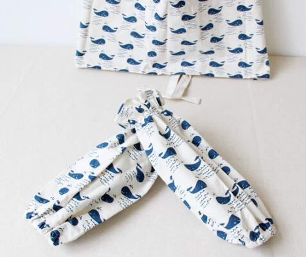 【2022最新】[HJ] エプロン女性 三角巾付き レディース業務用 フリーサイズ かわいい おしゃれ エプロン 三角巾 袖守り 3点セット (鯨柄) | KURASHILABO