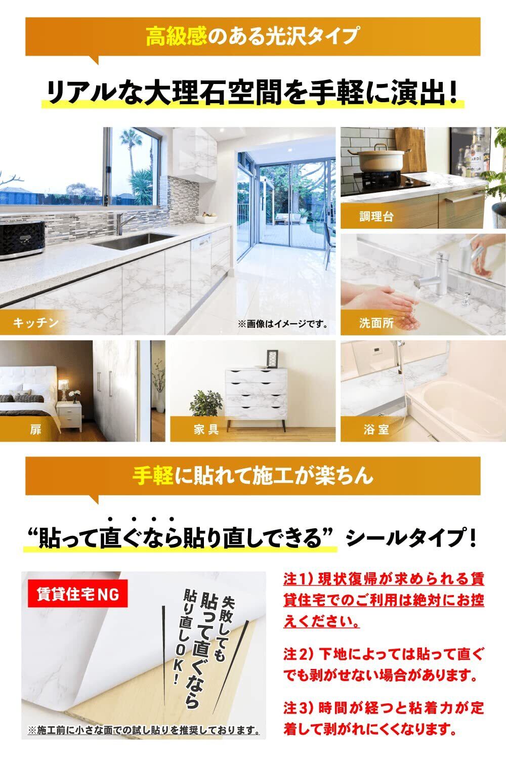 【人気商品】【DIYのプロ推薦】 大理石シート リメイクシート 壁紙シール 40×400cm 厚手 防水 耐熱 (解説動画付) 白 グレー 光沢 はがせる おしゃれ キッチン 貼れるゾー | KURASHILABO