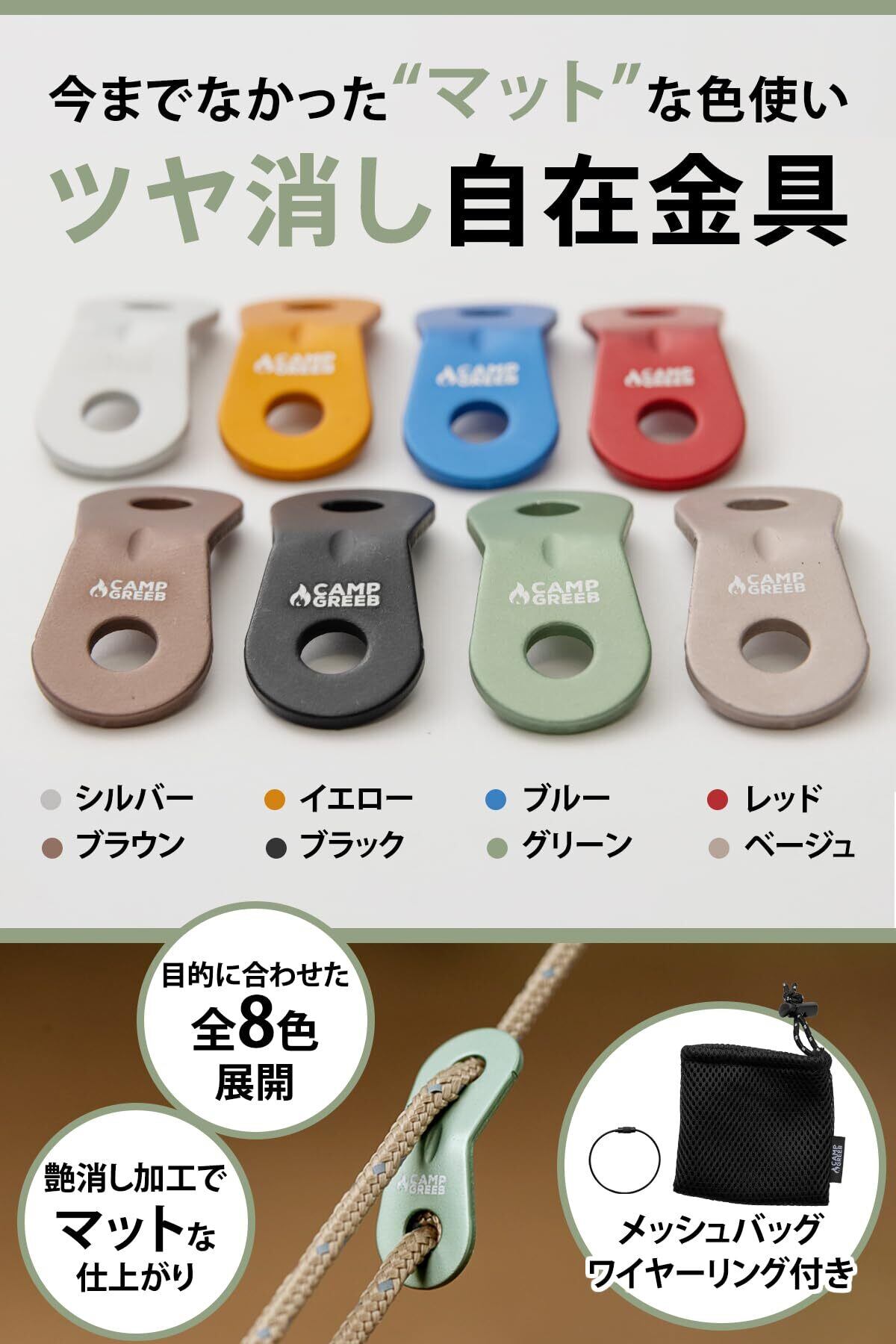 【在庫処分】キャンプグリーブ 自在金具 20個セット アルミニウム ロープテンショナー テント タープ ロープ 張り用 | KURASHILABO