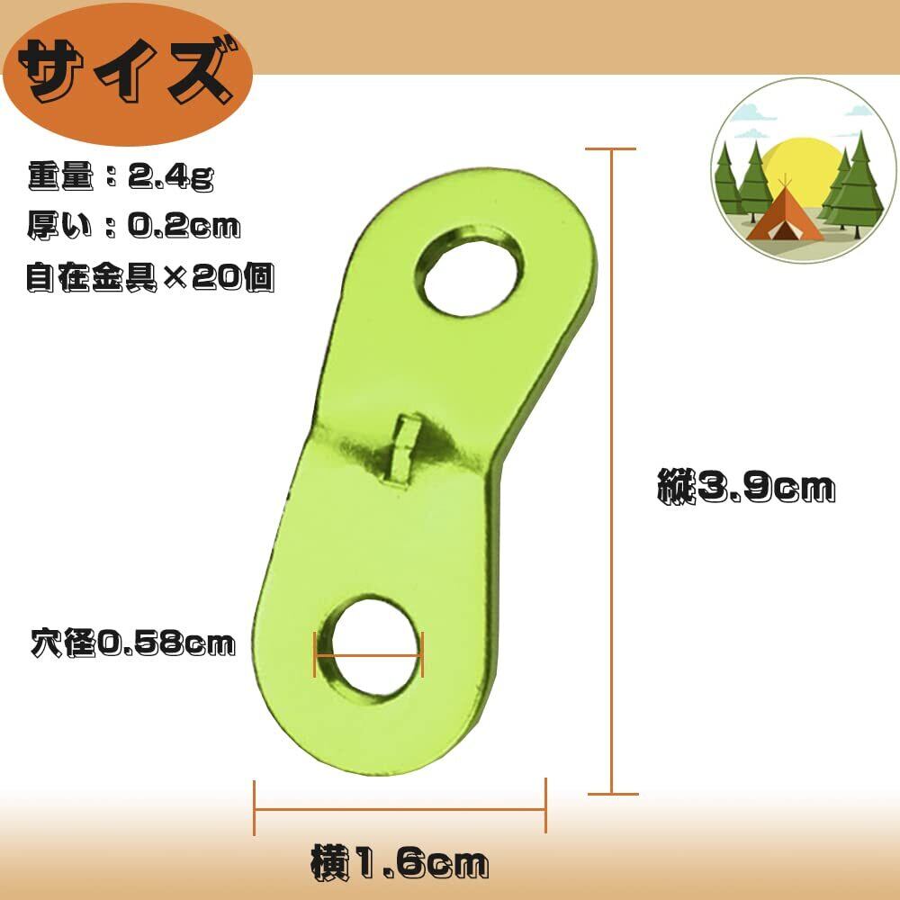 【特価商品】アルミ自在金具 ロープテンショ 長さ調整 軽量耐久 テントアクセサリー 強風対策 摩耗を減らす テント/やタープ/アウトドアキャンプ テント用 ロープ張り 蛍光グリーン 20個セット…