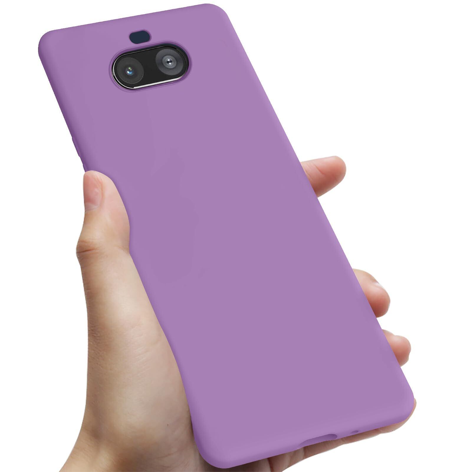 【特価セール】対応 Xperia 8 用の ケース シリコン 耐衝撃 薄型 スリム SOV42 au カバー TPU カメラ保護 ワイヤレス充電 ストラップホール 指紋 防止 スマホケース パープル 0108-XP8-08