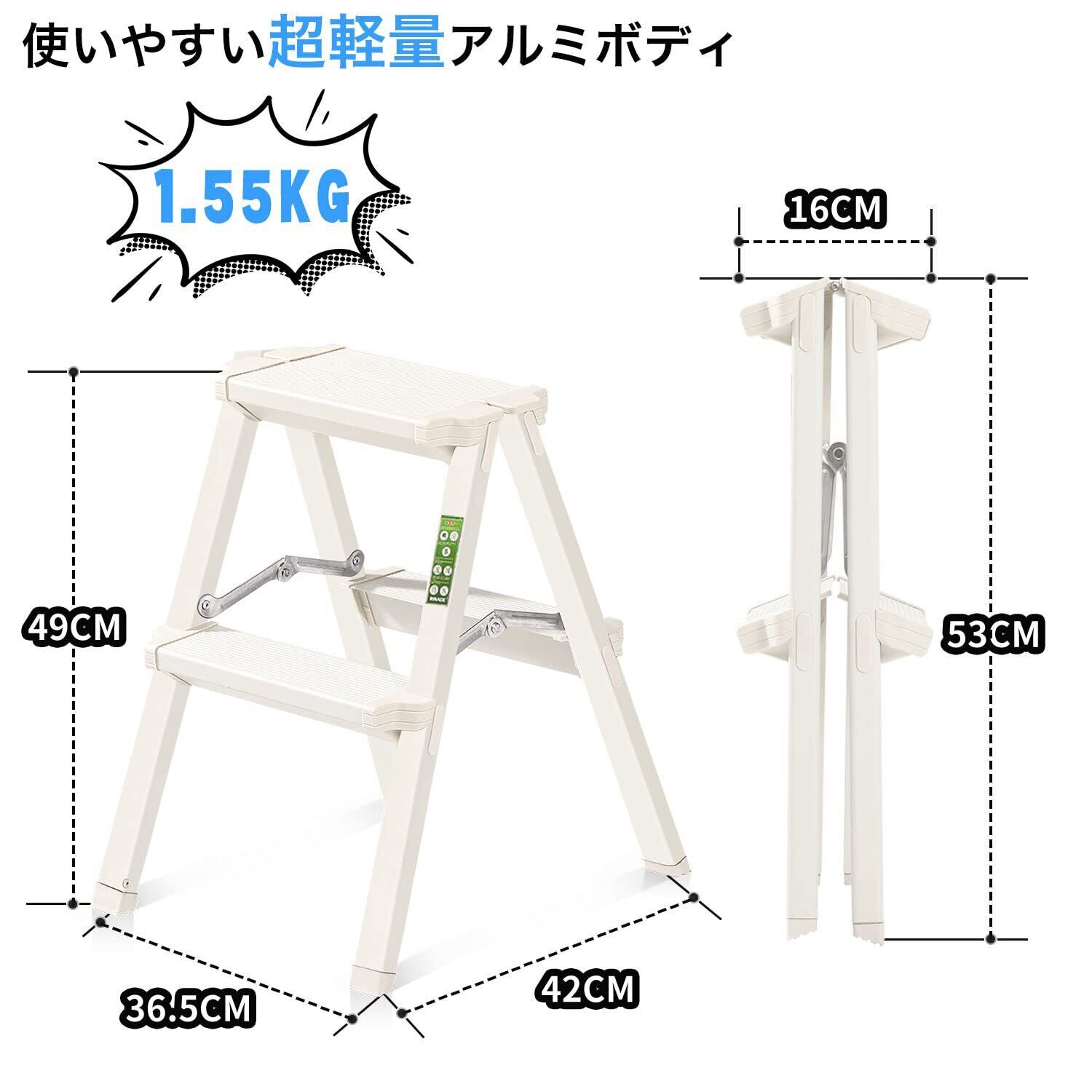 【人気商品】RIKADE 脚立2段 梯子 アルミ 脚立 折りたたみ ミニ 軽量 きゃたつ 踏み台 軽量 安全 ステップ アルミ 二段 脚立 折りたたみステップ 耐荷重150KG 滑り止め付き ステップ台(ホワイト二段) | KURASHILABO