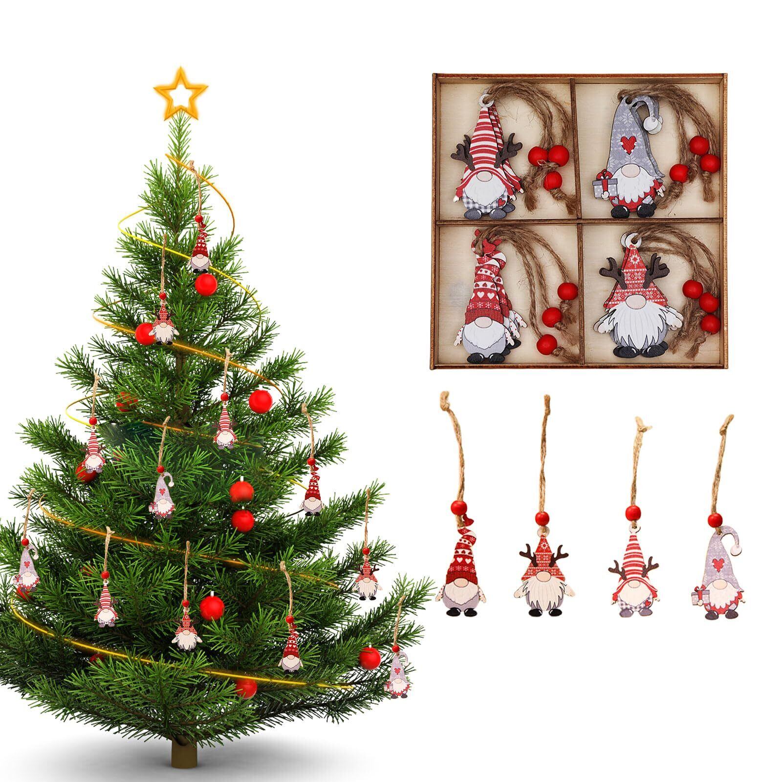 【在庫処分】クリスマス オーナメント 木製 12個セット サンタクロース クリスマスツリー オーナメント 人形 北欧の妖精 足長トムテ クリスマス 飾り インテリア 飾り付け 紐付き (C)