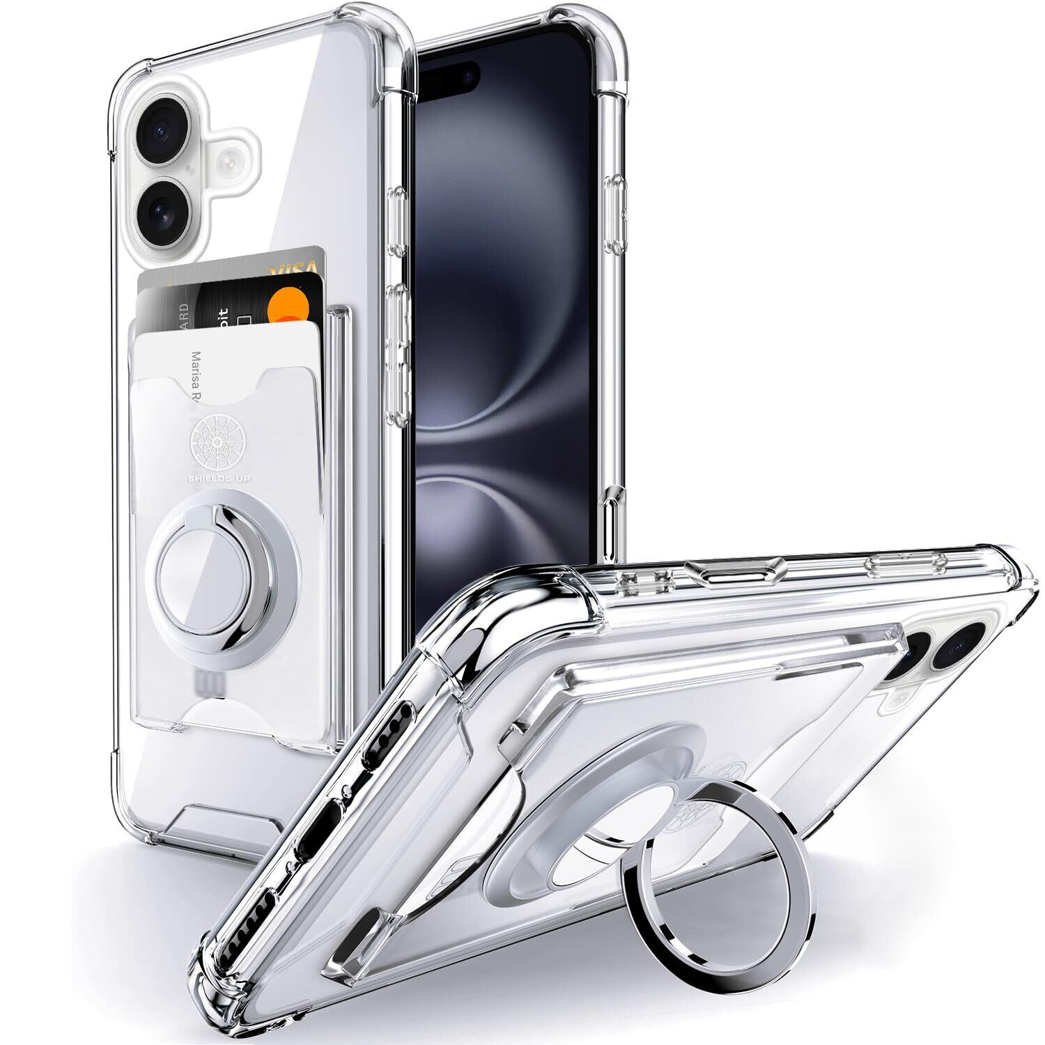 【数量限定】Rockaway 互換性 iPhone 16用 ケース カード収納 背面ポケット リング付き スタンド機能 耐衝撃 透明 TPU スマホケース 6.1インチ アイフォン16 用カバー - クリア | KURASHILABO