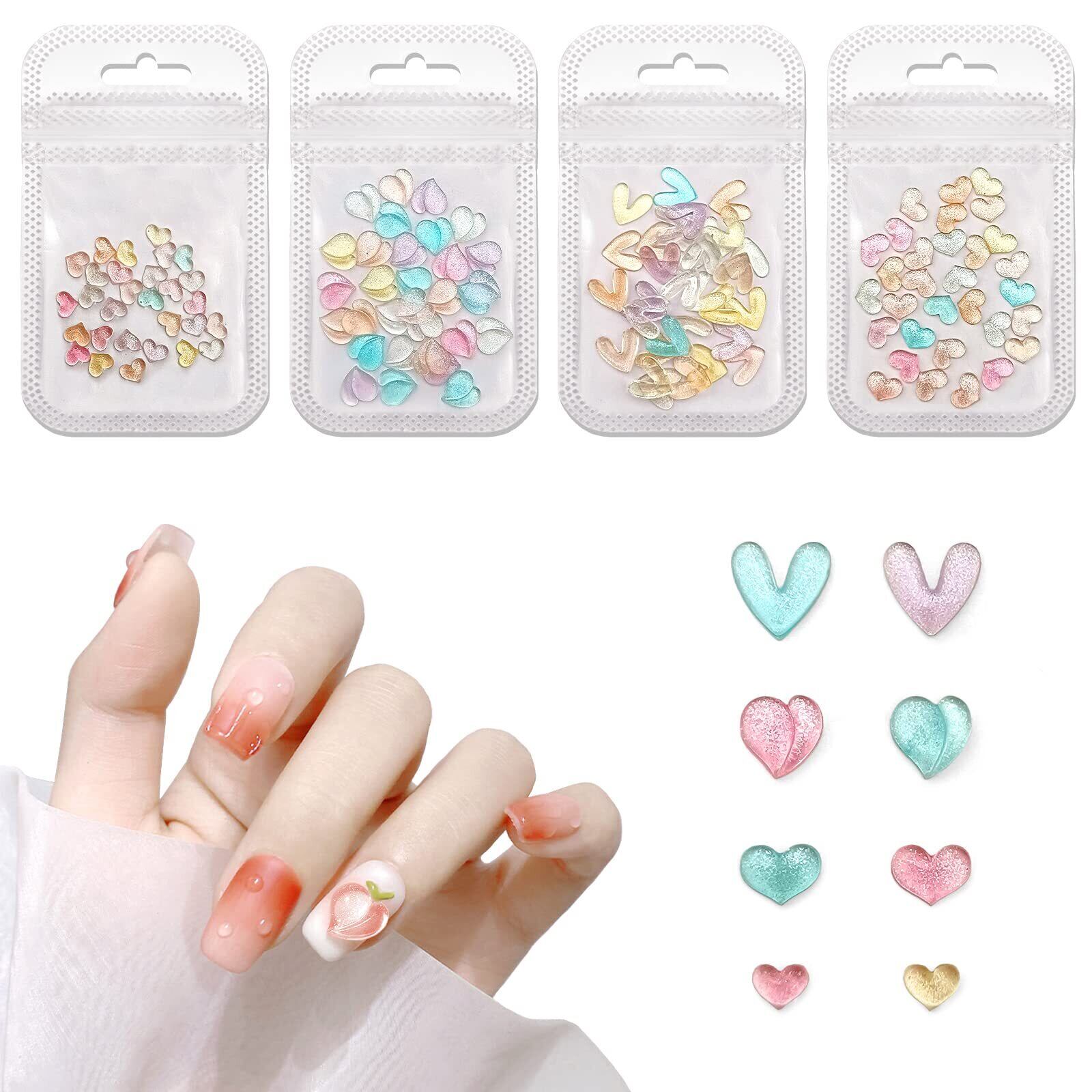 【新春セール】ネイルデコパーツ ネイルパーツ 【4スタイル 6カラー 128個セット】ネイルアートジュエリーパーツ ネイルデコレーション 3D 立体 ハート もも 宝石 可愛い きらきら ネイルラインストーン ハンドメイド 手作り DIY ネイル用