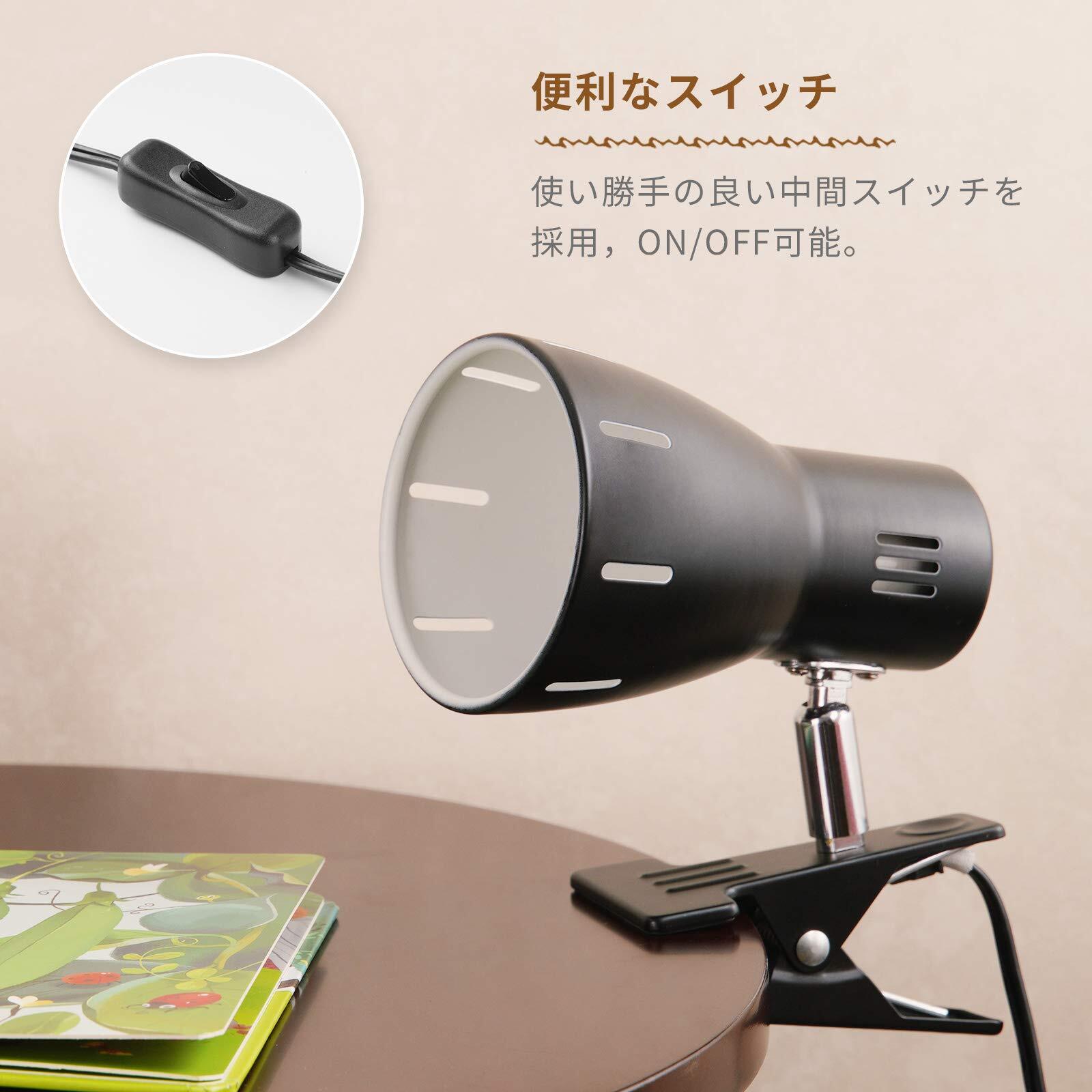 【特価セール】E26クリップライトANZENSHI スポットライト 電気スタンド クリップ 間接照明 角度調整可能 インテリア寝室照明 コード長1.6m金属製 E26電球別売 (黑) | KURASHILABO