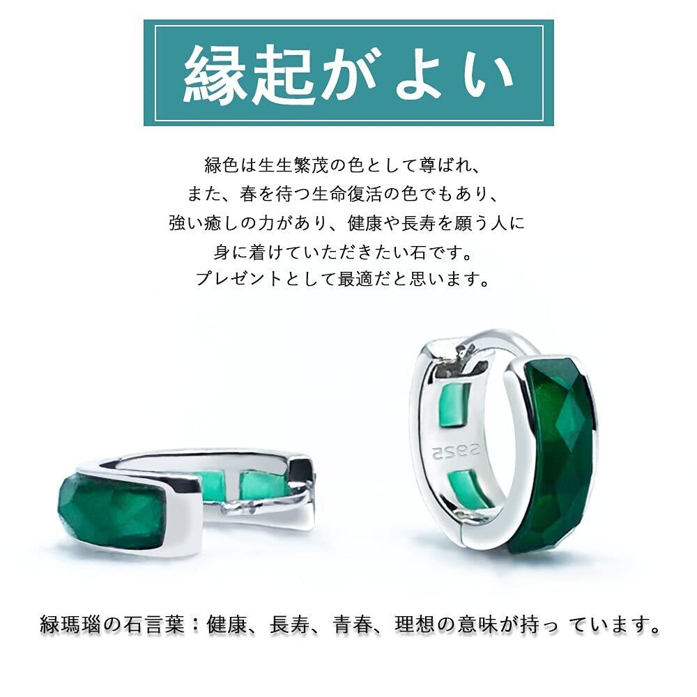 【2022最新】【MOBOTECH】フープピアス 緑ピアス レディース シルバー925 瑪瑙 グリーン 両耳セット フープリング 金属アレルギー対応 アクセサリー リング おしゃれ 人気 シルバー