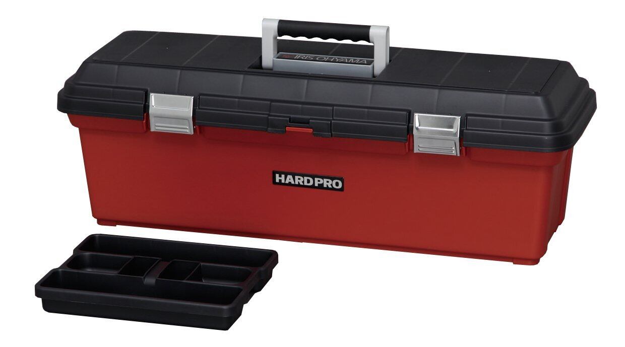 【人気商品】アイリスオーヤマ 工具箱 【幅約80×奥行約28×高さ約27cm】頑丈 天面耐荷重 約300kg 踏み台にもなる インナートレー 付き 持ちやすい ゴム製グリップ 長物収納にハードプロ 80 ダークグレー/レッド