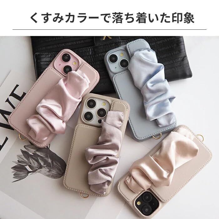 【人気商品】【 UNiCASE 公式 】iPhone15,14,13対応 背面 カード収納 [ 可愛い サテン生地のシュシュ付き 手帳型 スマホケース ] 落下防止 ミラー付きスマホケース iPhone ケース [ ユニケース ] Classy Scrunchie Case for iPhone15,14,13 (mint)