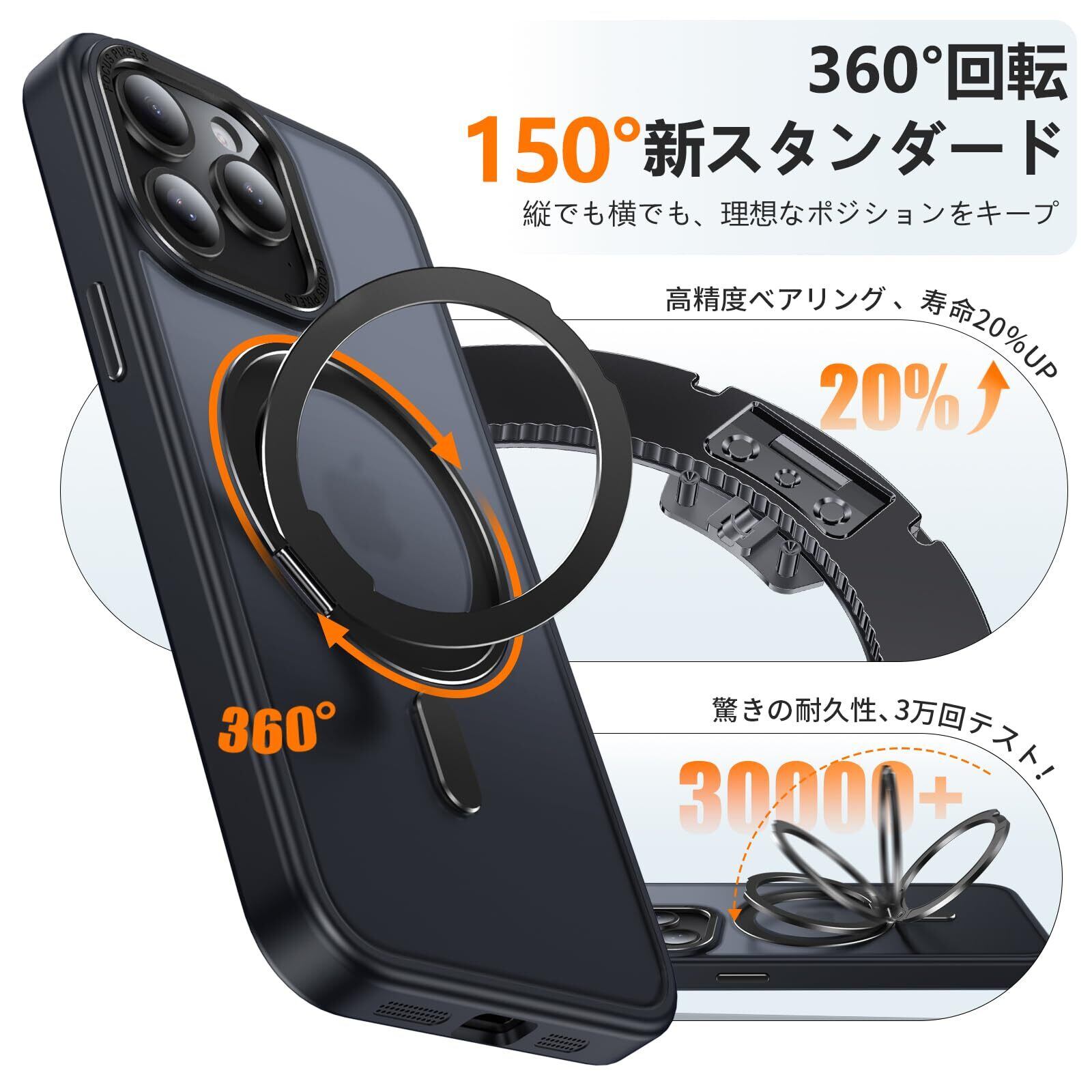 【2022最新】iPhone 15 Pro 適用 ケース Magsafe対応 アイフォン15プロ カバー 360°回転スタンド Uovon スマホケース アイホン 15pro 携帯ケース ワイヤレス充電 車載ホルダー 対応 ストラップ穴付き 半透明 指紋防止 黄变防止 ・ ブラック | KURASHILABO