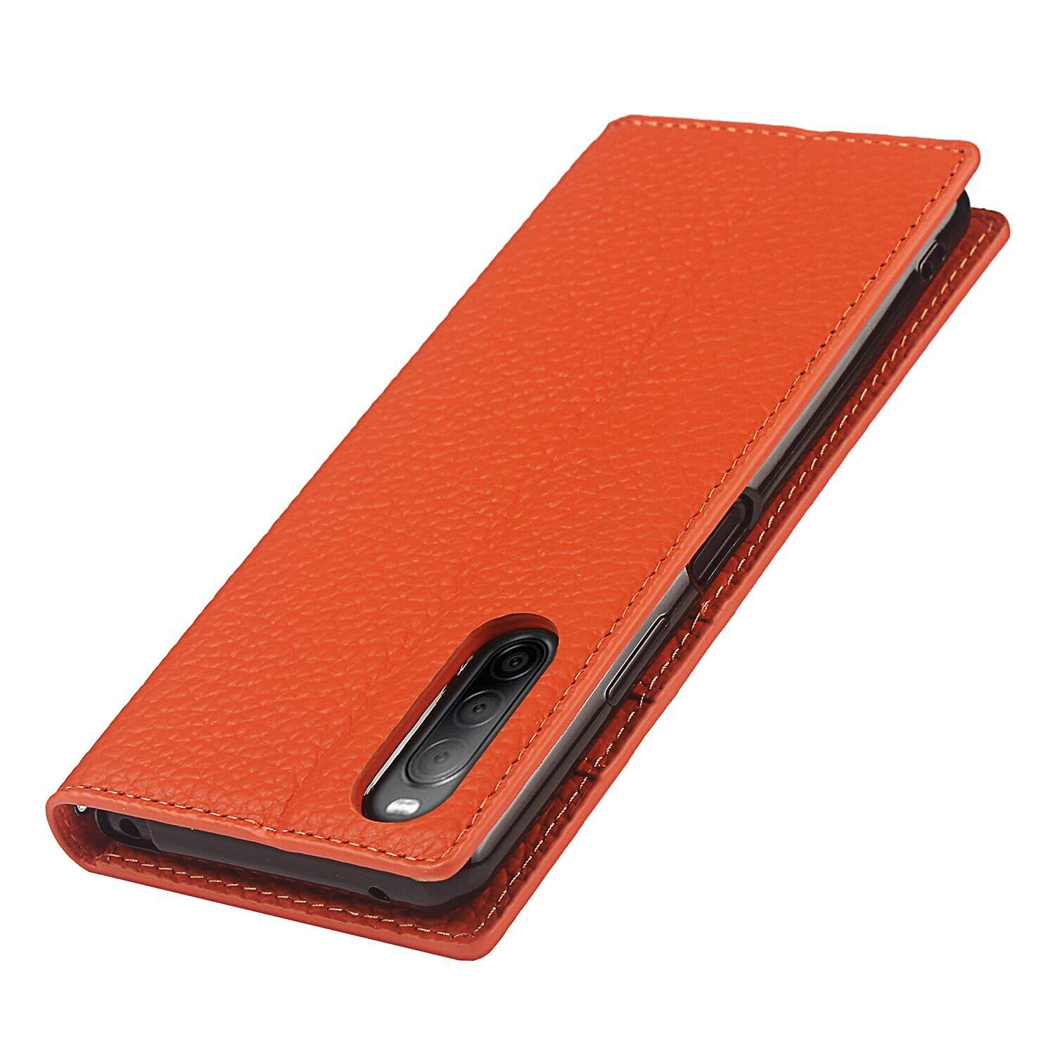 【2022最新】Pelanty For Sony Xperia 10 II ケース手帳型 SO-41A SOV43 スマホケース 牛革製品 本革レザー 財布型カバー カード収納 スタンド機能 内蔵マグネット 手作り柔らかい ソニー エクスペリア 10ii 第2世代 so41a 携帯カバー ストラップ付 ヘッドフォンケーブル 耐衝撃 オレンジ