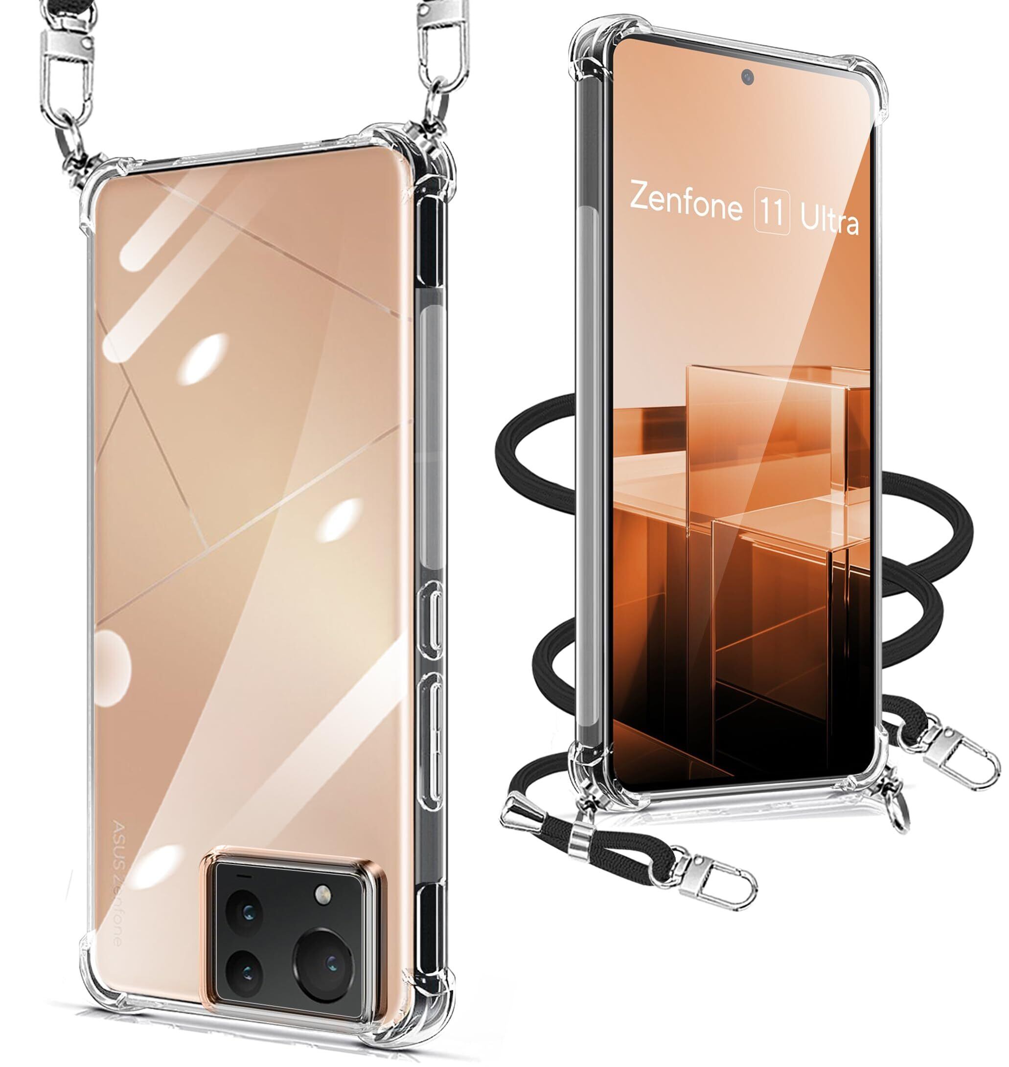 【特価商品】Zenfone 11 Ultra ケース クリア ショルダー ゼンフォン11 ウルトラ ケース 耐衝撃 全面保護 カバー ストラップ付き 調節可能 スマホケース 肩掛け 斜めかけ 縄掛けケース 紐付き 薄型 軽量 取り外し可能 落下防止【透明】