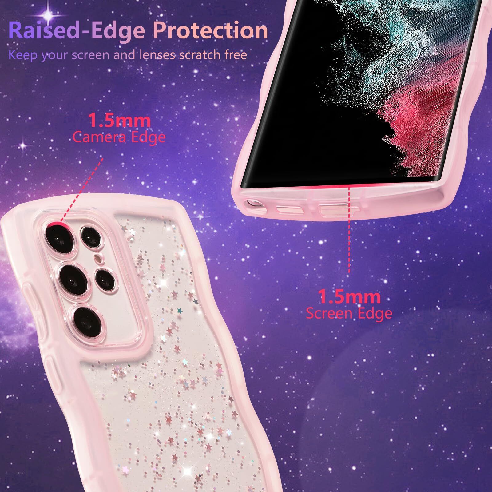【人気商品】ZTOFERA Samsung Galaxy S24 Ultra 5G 用波状のケース 透明 クリアケース サムスン ギャラクシー S24 Ultra ウェーブケース 可愛い おしゃれ キラキラ 星 スマホケース ソフトTPU スターパターン 軽量 耐衝撃 人気 韓国 S24 Ultra ケース 女子 女性 携帯電話カバー (ピンク)