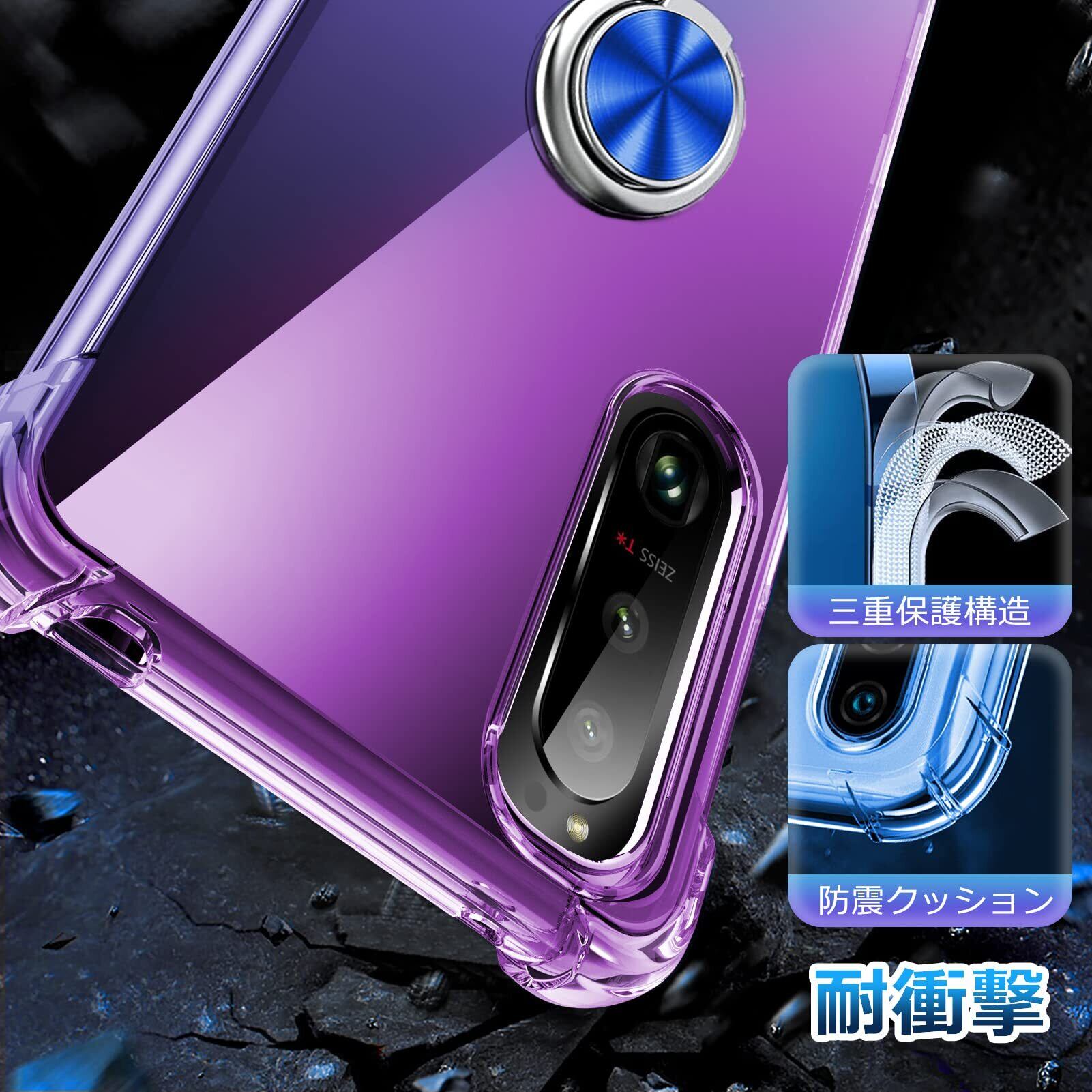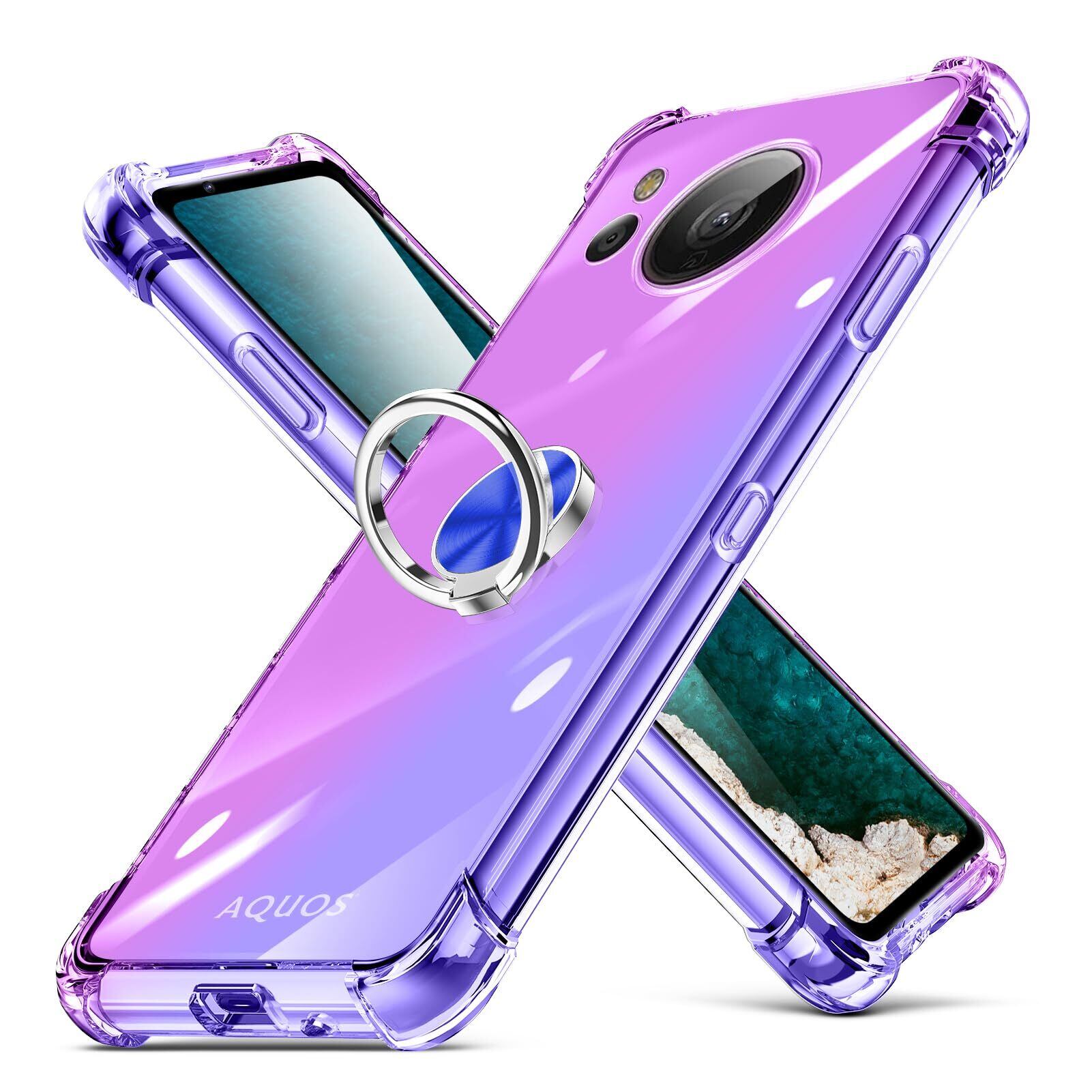 【新着商品】AQUOS sense7 Plus ケース リング クリア 透明 スリム 薄型 TPU sense7 Plus カバー 耐衝撃 クリア 透明 スリム 薄型 グラデーション スタンド機能 車載ホルダー TPU 黄変防止 指紋防止 防塵 滑り防止 人気 携帯カバー 紫+青D634-sen7p-02
