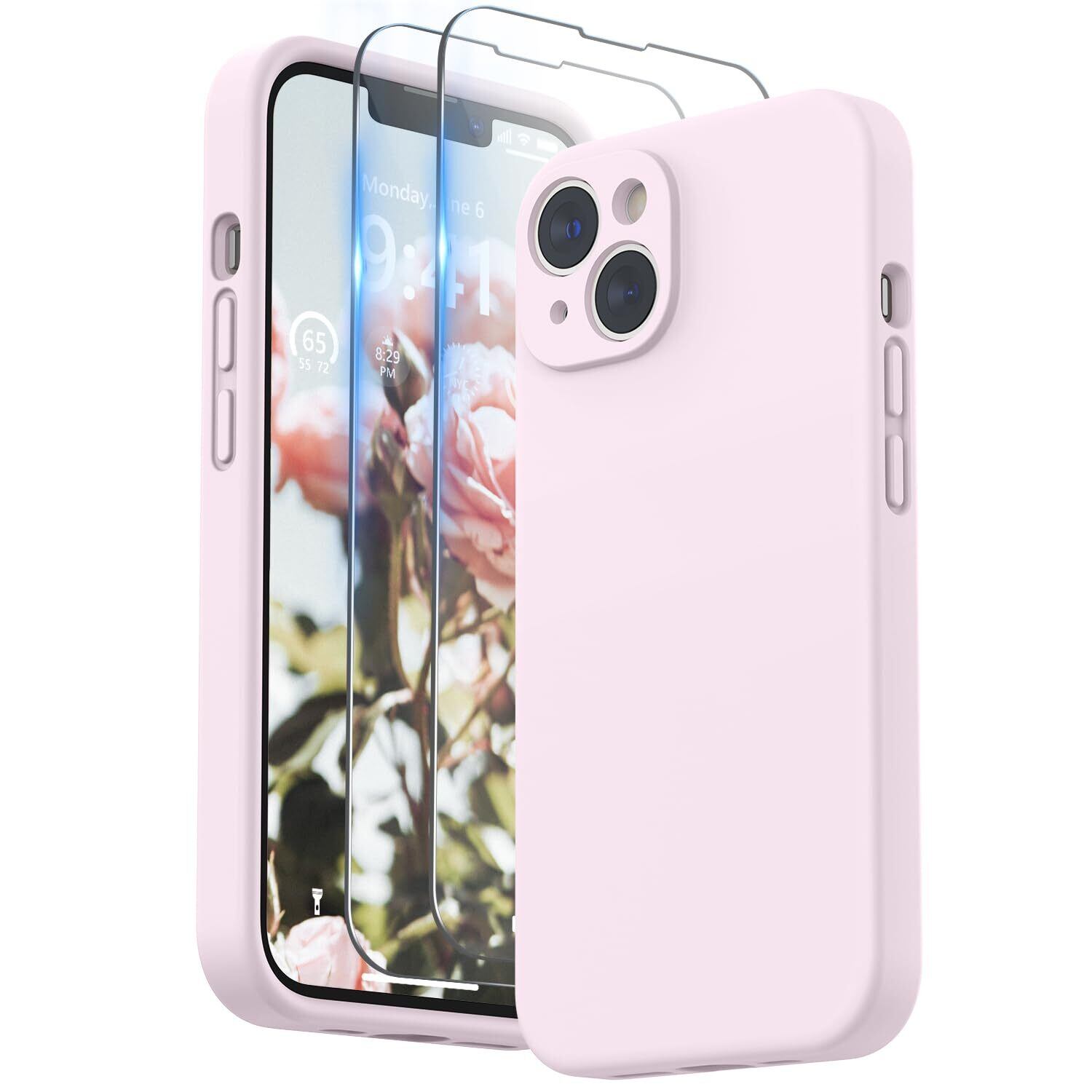 【新着商品】SURPHY iPhone14用ケース シリコン,フィルム付き 6.1インチ対応(2022) あいふぉん14用シリコンケース (レンズの全面保護) 耐衝撃 超軽量 指紋防止 全面保護 iPhone14用ソフトカバー (グレーピンク)