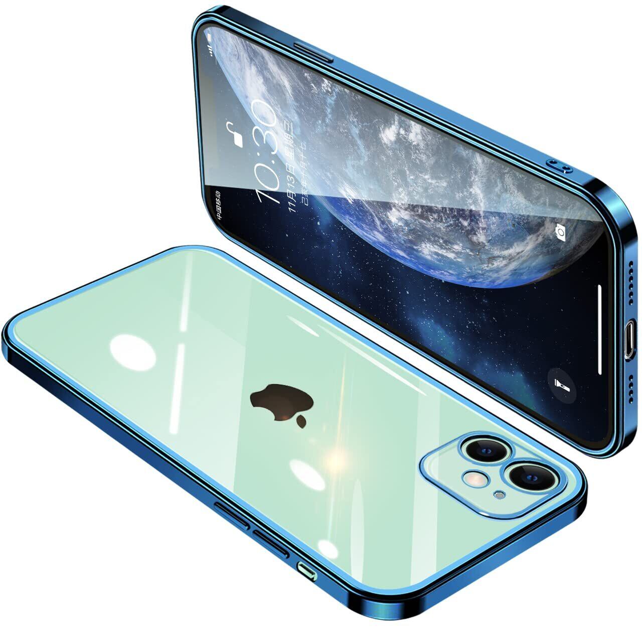 【新着商品】に適合するiPhone11 用のケース クリア アイフォン11 用のカバー 透明 スマホケース 全面保護 耐衝撃 軽量 メッキ加工 TPU 薄型 ストラップホール付き 滑り止め 落下防止(ブルー)