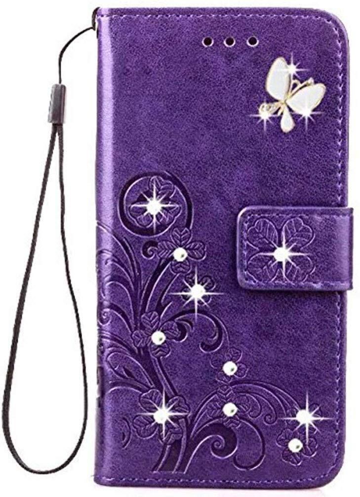 【特価商品】らくらくスマートフォン F-53E ケース シン フィット Easy Phone ケース F53E おしゃれ 純色 四つ葉のクローバーの印 PUレザー 上絵 手帳型 カード入れ らくらくフォン f53e 財布カバー スタンド機能 耐衝撃 防塵 装着やすい 吸着 キラキラ 胡蝶 ラインストーン デコ メチャ可愛い らくらくホン F-53E スマホカバー (パープル)