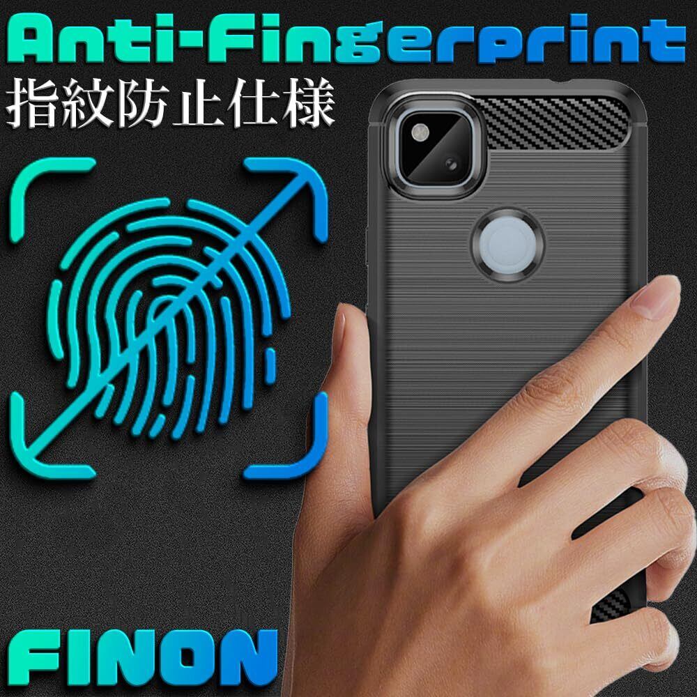 【在庫処分】FINON for Google Pixel 4a 5G 用 ケース カバー スマホケース カーボン デザイン 指紋防止 薄型 軽量 耐衝撃 簡易脱着 ソフトケース (ブラック)