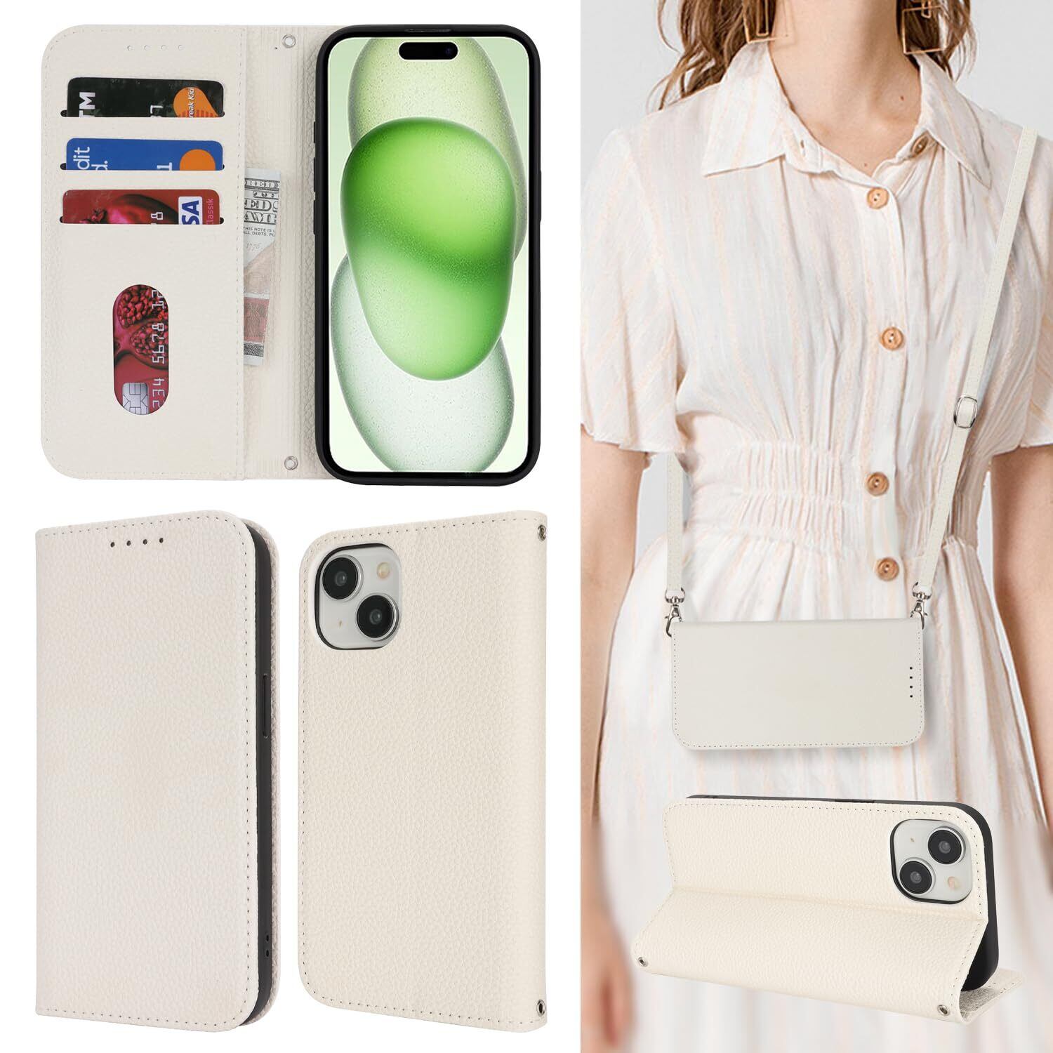 【2022最新】【Hamany】 スマホケース iphone 14 ケース ショルダー iphone 13 ケース 手帳型 スマホストラップ あいふぉん14ケース カード収納 財布型 スタンド機能 アイホン13ケース マグネット式 レザー 女性 肩がけ 首掛け 斜め掛け ショルダー 携帯カバー -アンバー ホワイト