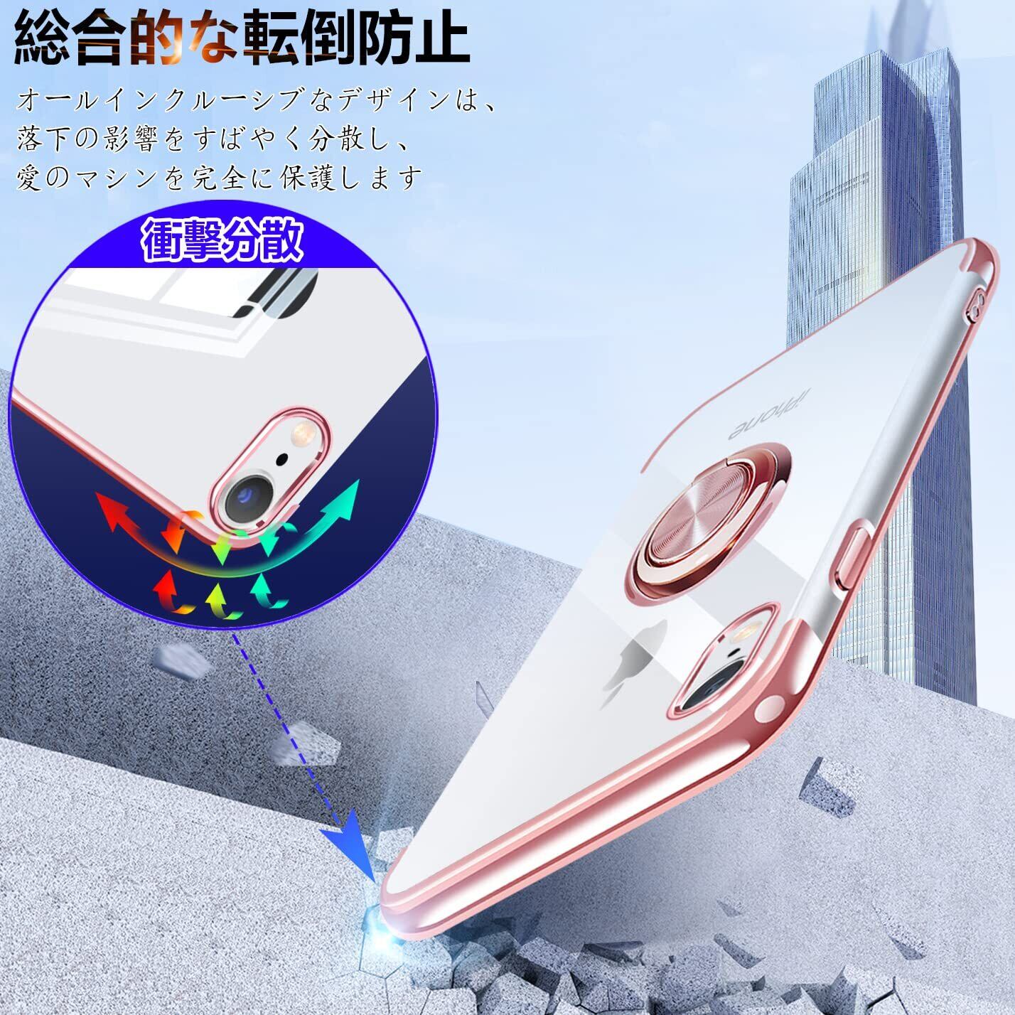 【2022最新】iPhone XR ケース リング付き クリア アイフォンxr カバー リング 透明 耐衝撃 全面保護 薄型 軽量 メッキ加工 TPU スタンド機能付き 360回転 車載ホルダー対応 クリアケース(ローズゴールド) | KURASHILABO
