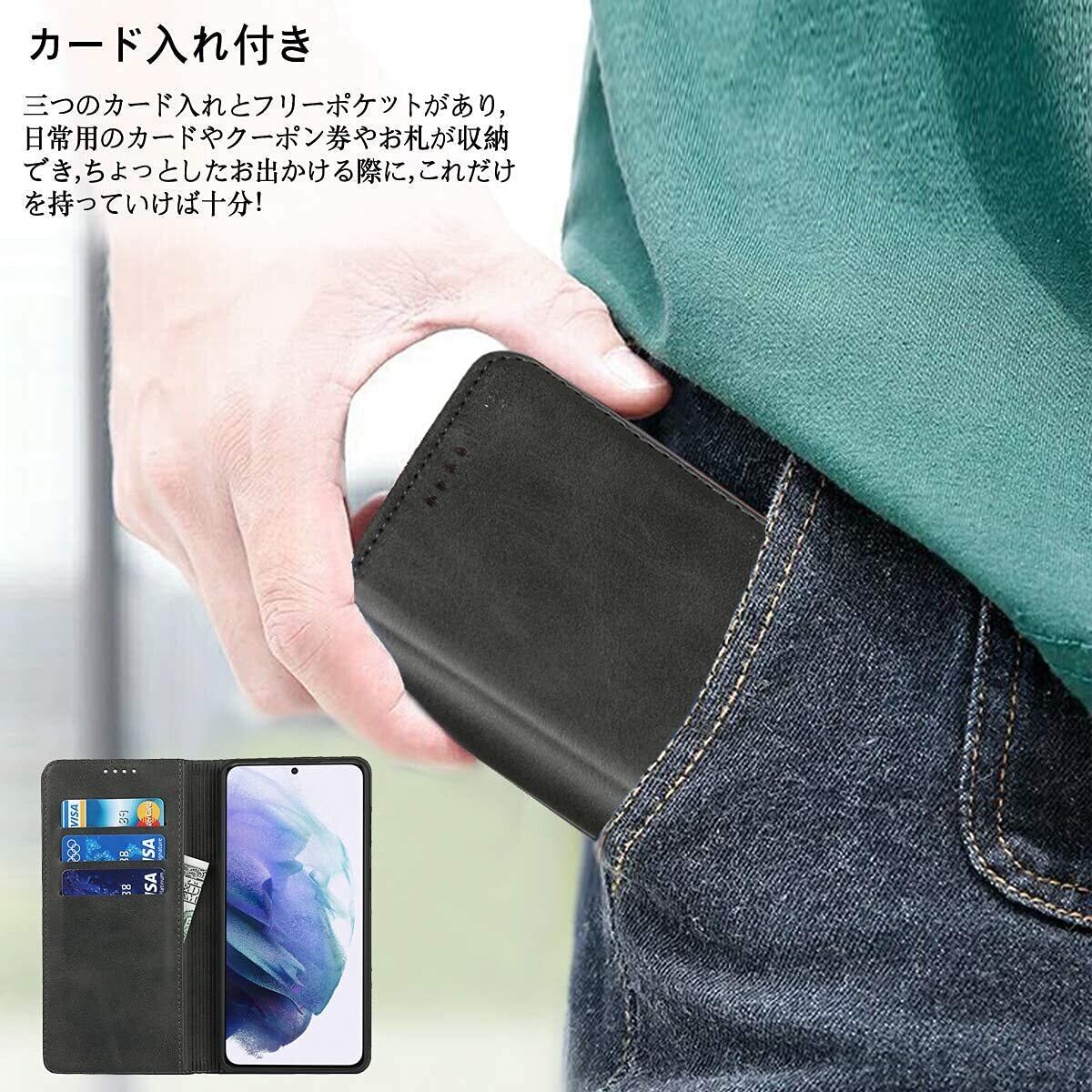 【新春セール】【iCoverCase】ギャラクシーS21 5G 手帳型ケース SC-51B SCG09 対応 docomo au スタンド機能内蔵マグネットカード入れ ブラック | KURASHILABO