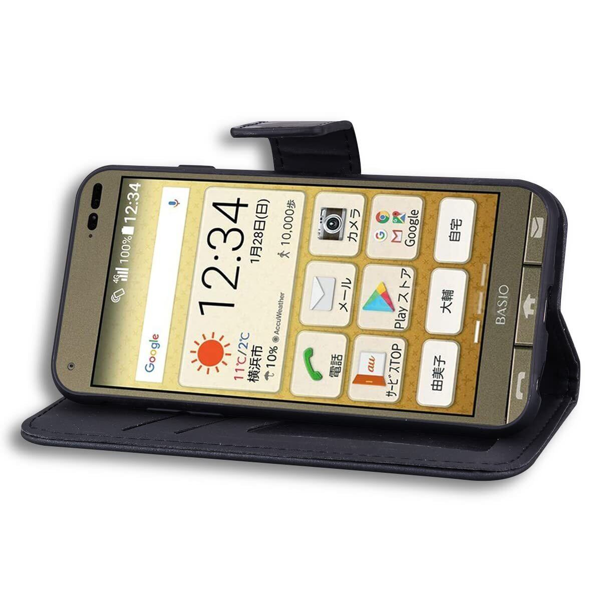 【在庫処分】BASIO3 KYV43 ケース 手帳型 ベイシオ3 KYV43 ケース 財布型 京セラ ベイシオ3 スマホケース Kyv43 手帳型 カバー カードポケットスタンド機能 京セラ Basio3 ケース 着脱しやすい、擦り傷防止 軽量薄型 耐衝 かわいい 動物柄 Kyocera Basio 3 KYV43 適応 携帯ケース - 黒