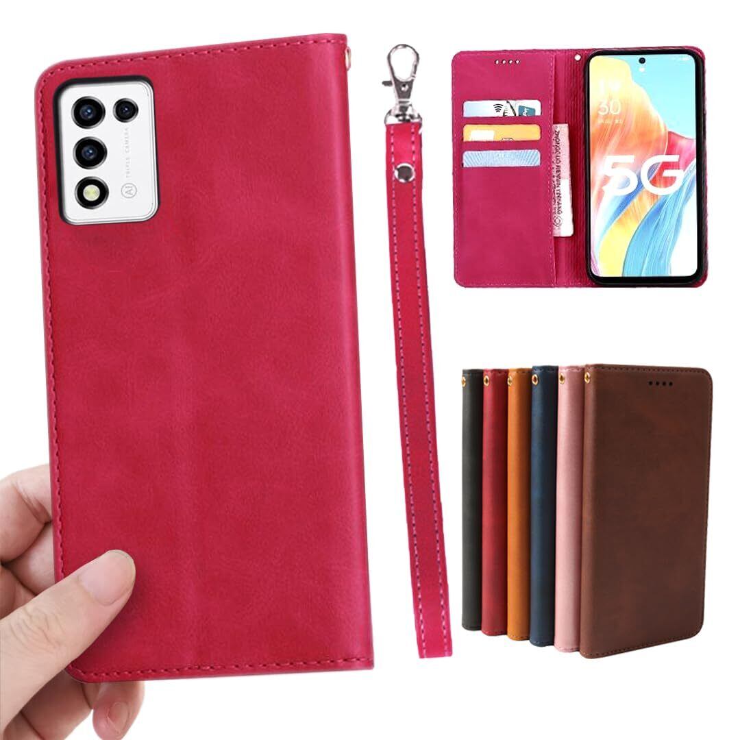 【2022最新】ZTE Libero 5G III A202ZT ケース 手帳型 ストラップ 同梱 適用 Libero5G 3 手帳型ケース リベロ 5G III カバー 手帳 リベロ 5G 3 A202ZT スマホケース Libero5GIIIケース Libero5GIII case 【GoKIGIoD】 財布型 内蔵マグネット 弱磁 カード収納 ストラップホール スタンド機能 レトロ ローズレッド