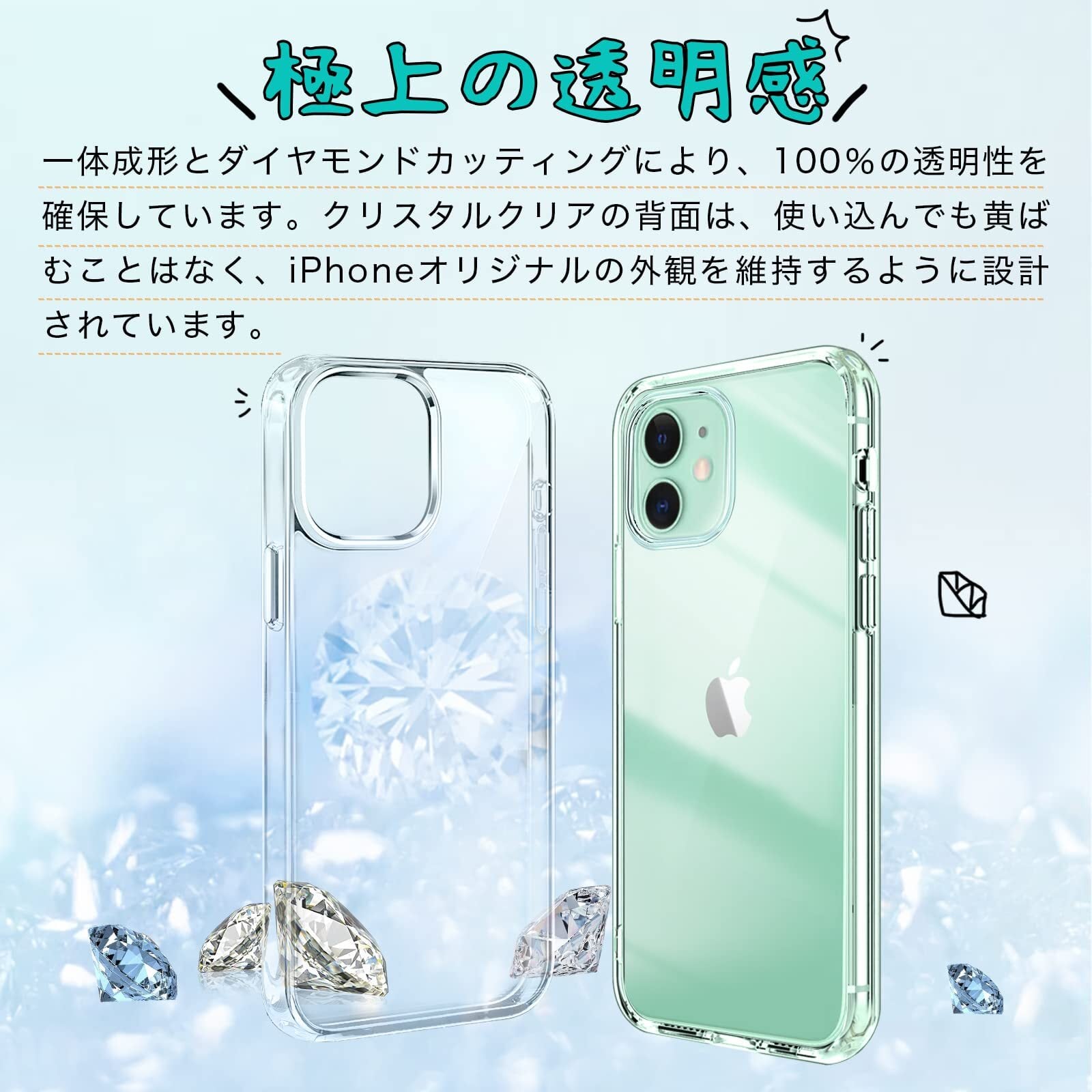 【在庫処分】iPhone 11 ケース クリア MIL規格取得 衝撃吸収 PC背面 + TPUバンパー 二層構造 iPhone 11 ケース SGS認証黄変防止 ワイヤレス充電対応 アイフォン 11 透明 スマホケース 保護カバー (6.1インチ)