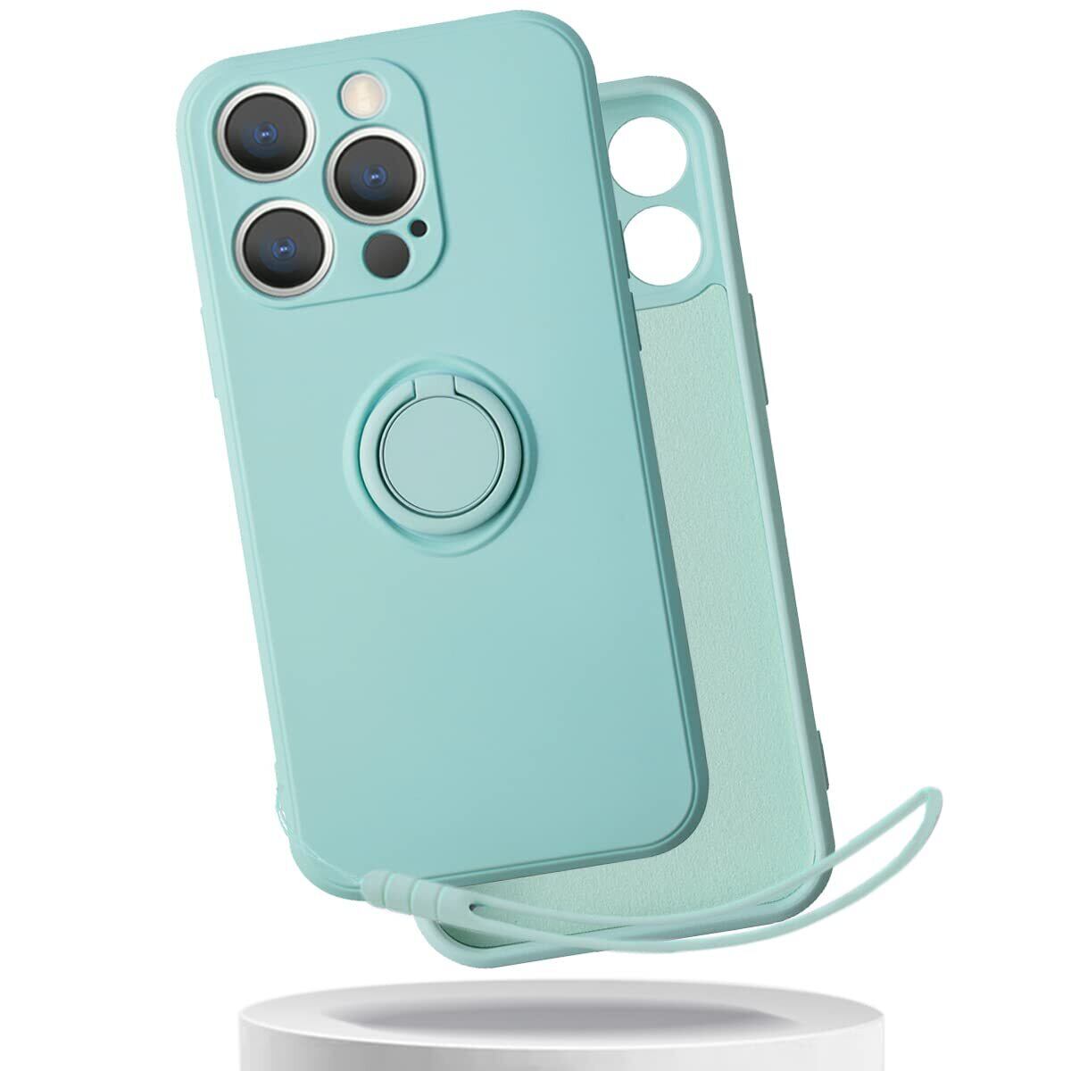 【特価セール】適用 iphone 13 pro max ケース リング ストラップ付き シリコン アイフォン 13 プロ マックス カバー リング付き シリコーン アイフォン13プロマックス スマホケース 薄型 軽量 【GoKIGIoD】 バンパー ストラップホール 携帯カバー 耐衝撃 ライトシアン